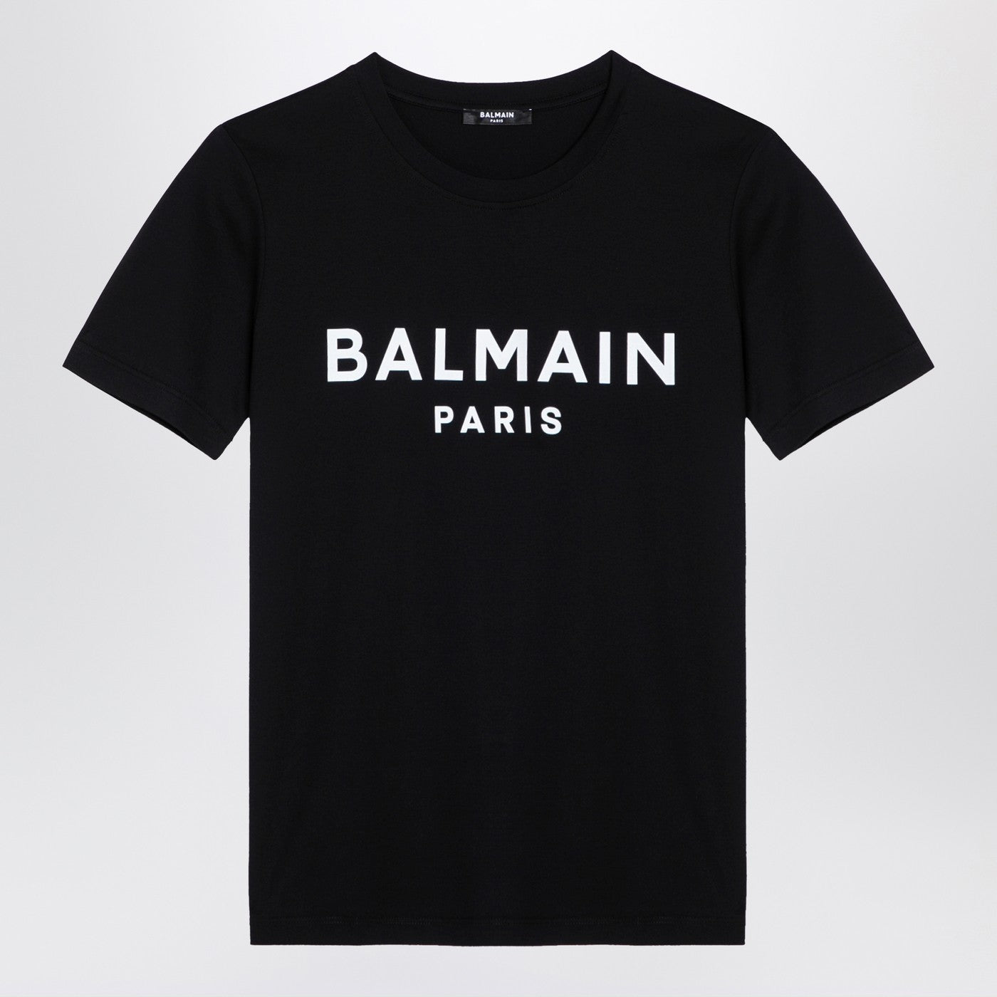 Black cotton Balmain crew-neck T-shirt featuring short sleeves, contrasting front lettering logo and straight hem.