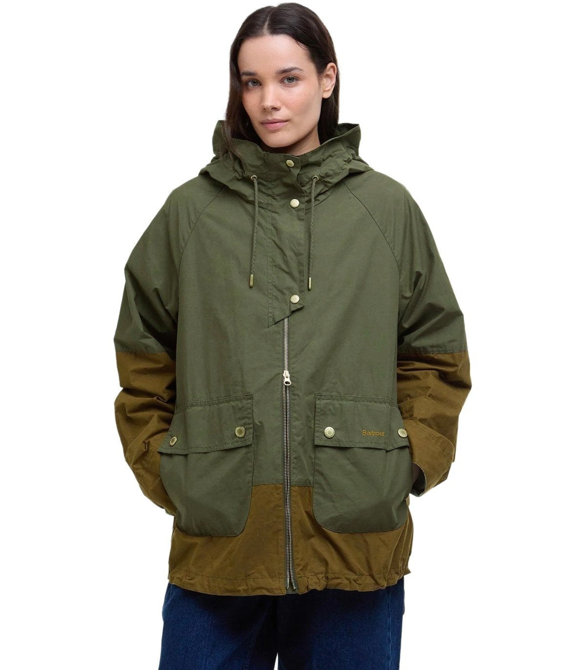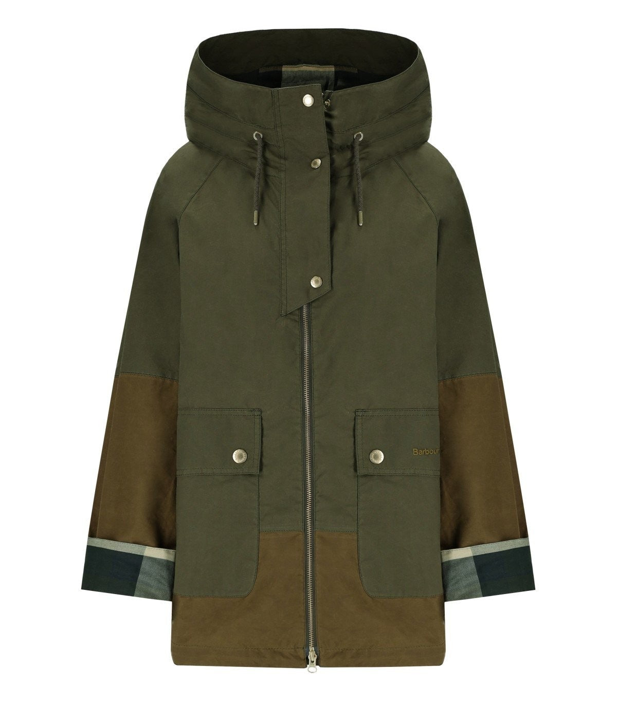 Hayley jacket by Barbour made of cotton in a patchwork design in shades of green. Characterized by a hidden zip closure with button placket at the front, it features a tartan lining in the hood and inside the cuffs of the sleeves. Equipped with a fixed hood and adjustable drawstring at the hem. Relaxed fit. Outer composition: 100% cotton. Hood lining: 65% polyester, 35% cotton.