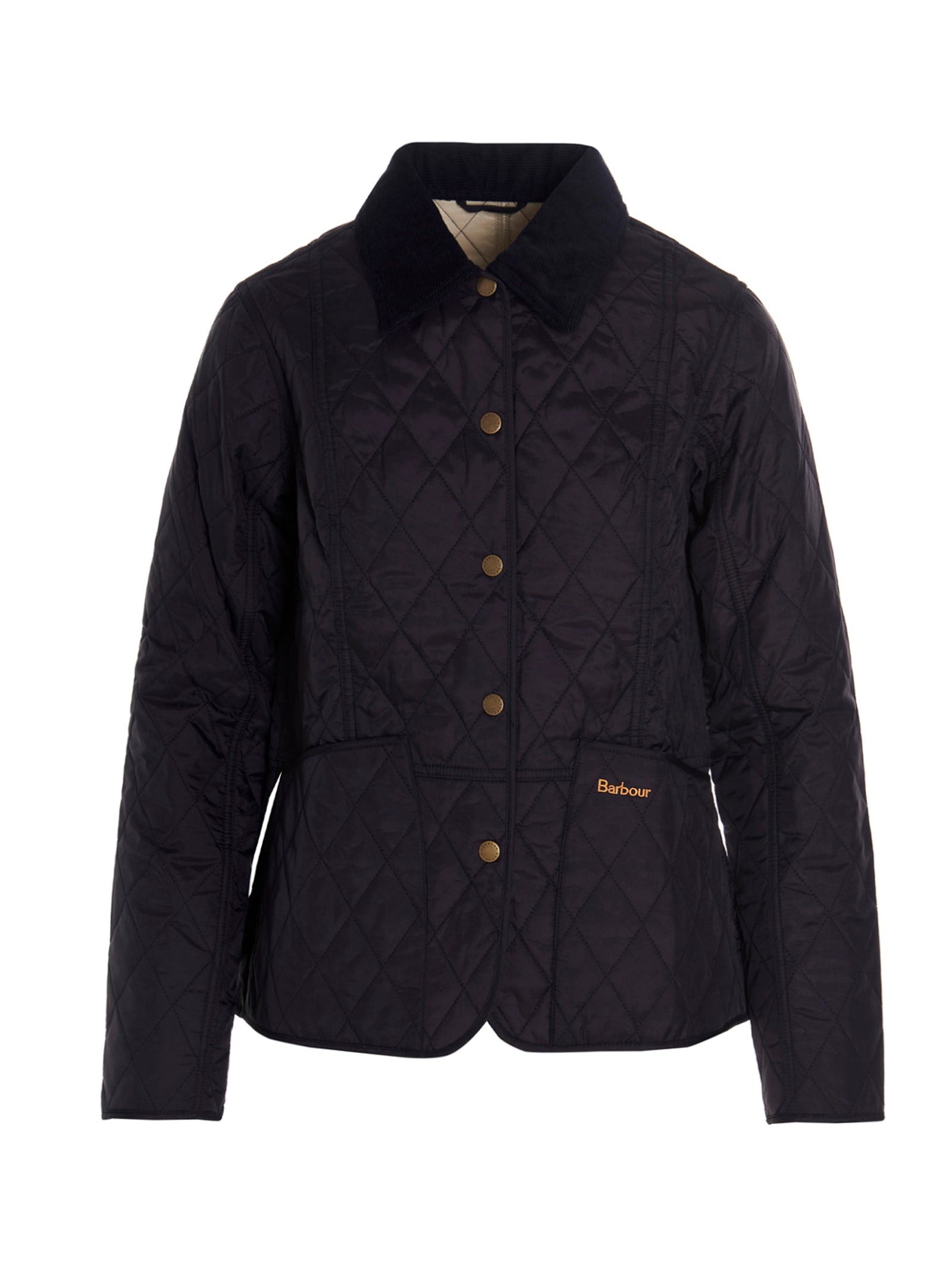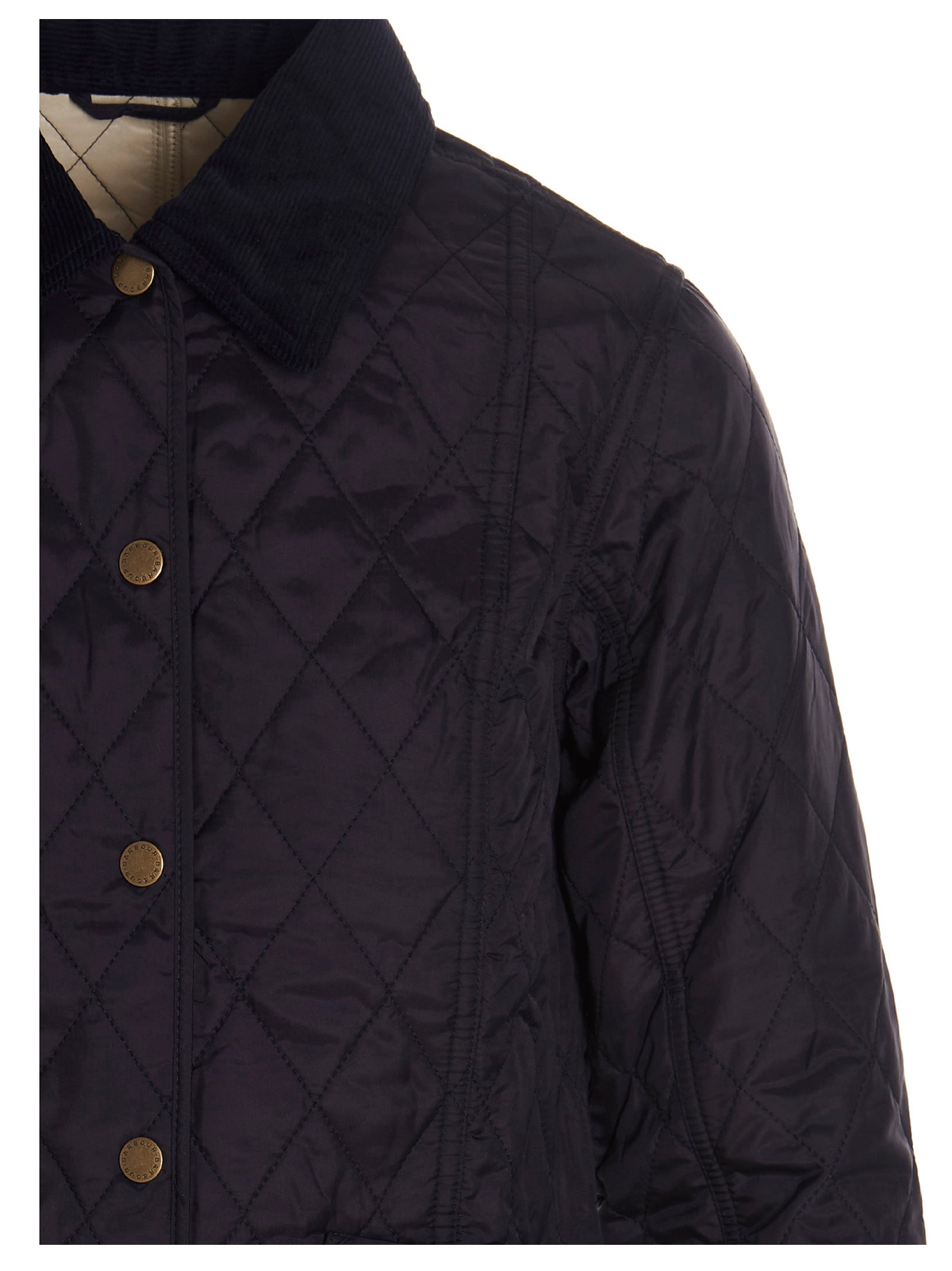 Liddesdale' jacket in a quilted tech fabric with snap button closure, corduroy collar, pockets, logo embroidery and long sleeves.