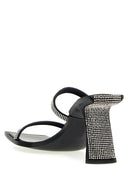Ewa sandals in rigid material with sequin appliqué, buckle straps, leather insole, and sculpted heels.