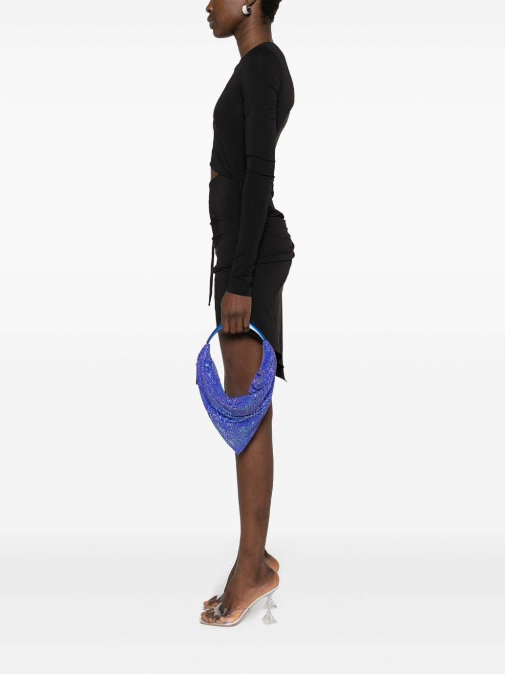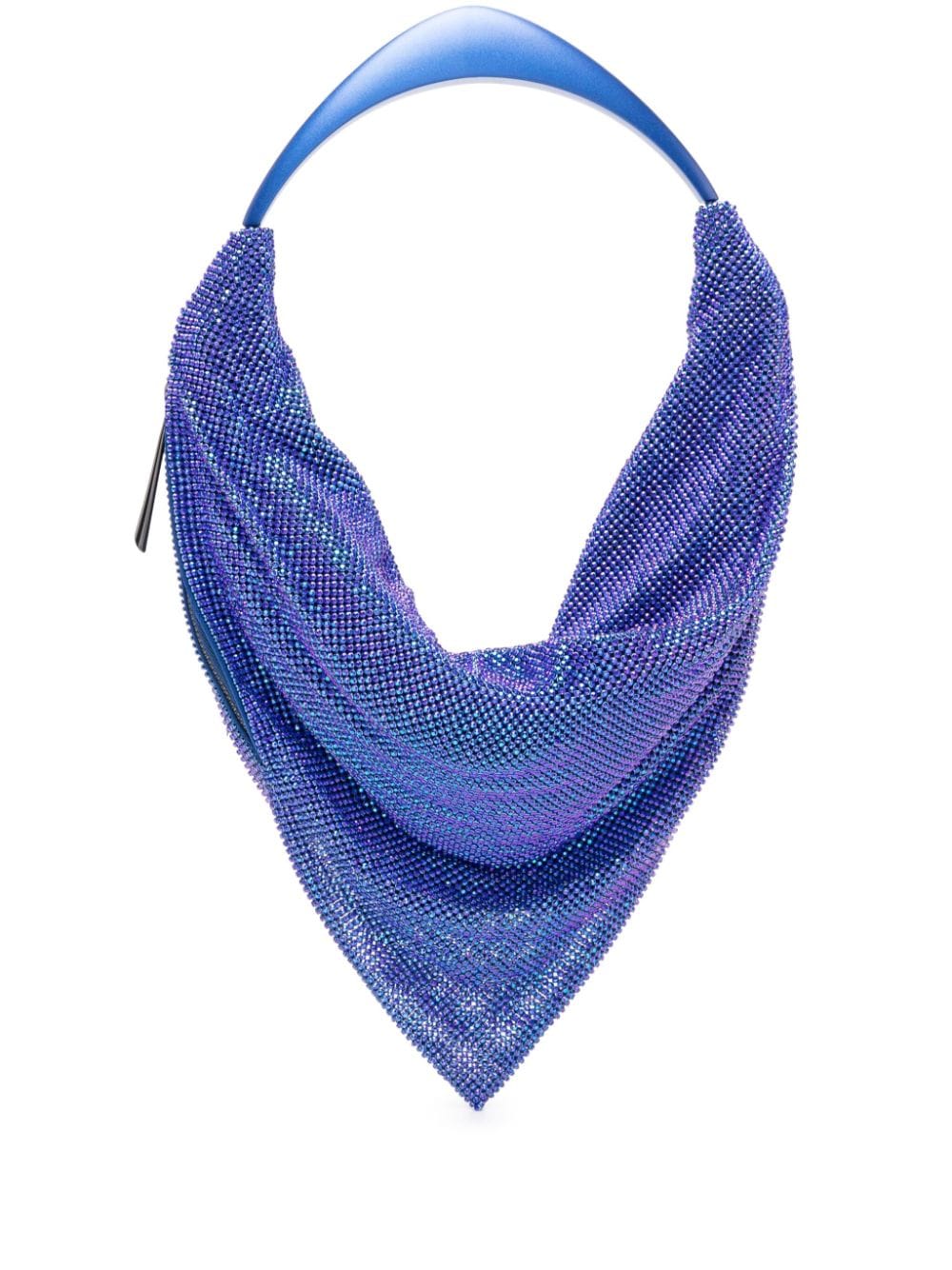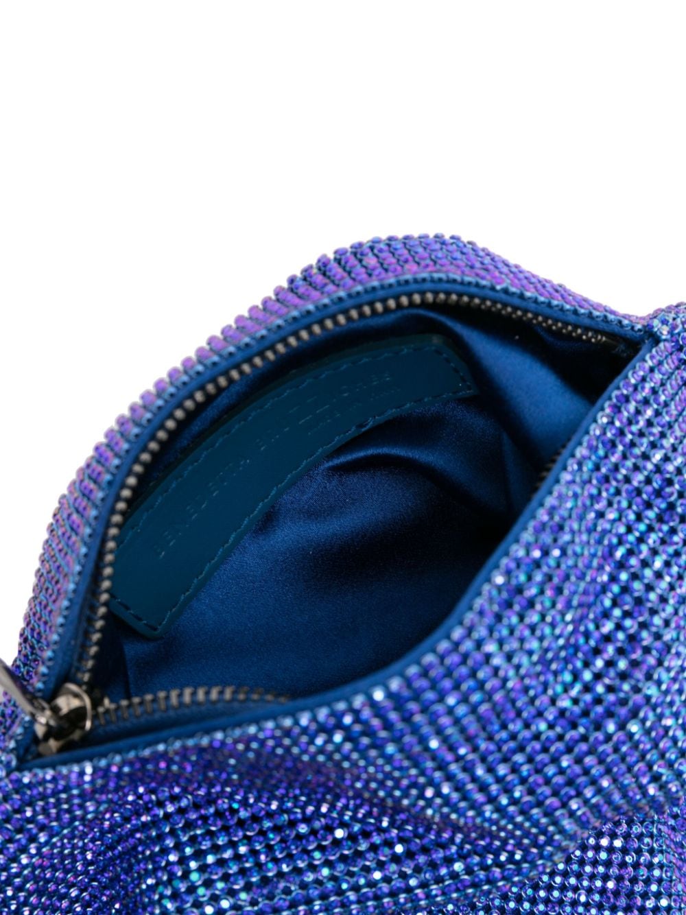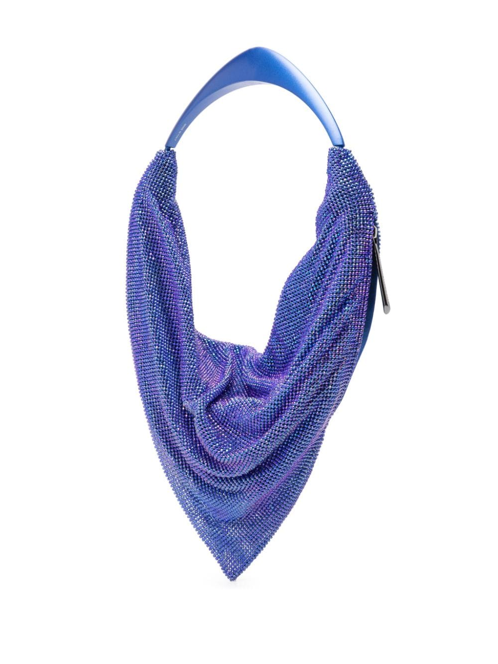 royal blue silk rhinestone embellishment draped design side zip fastening single top handle main compartment full lining