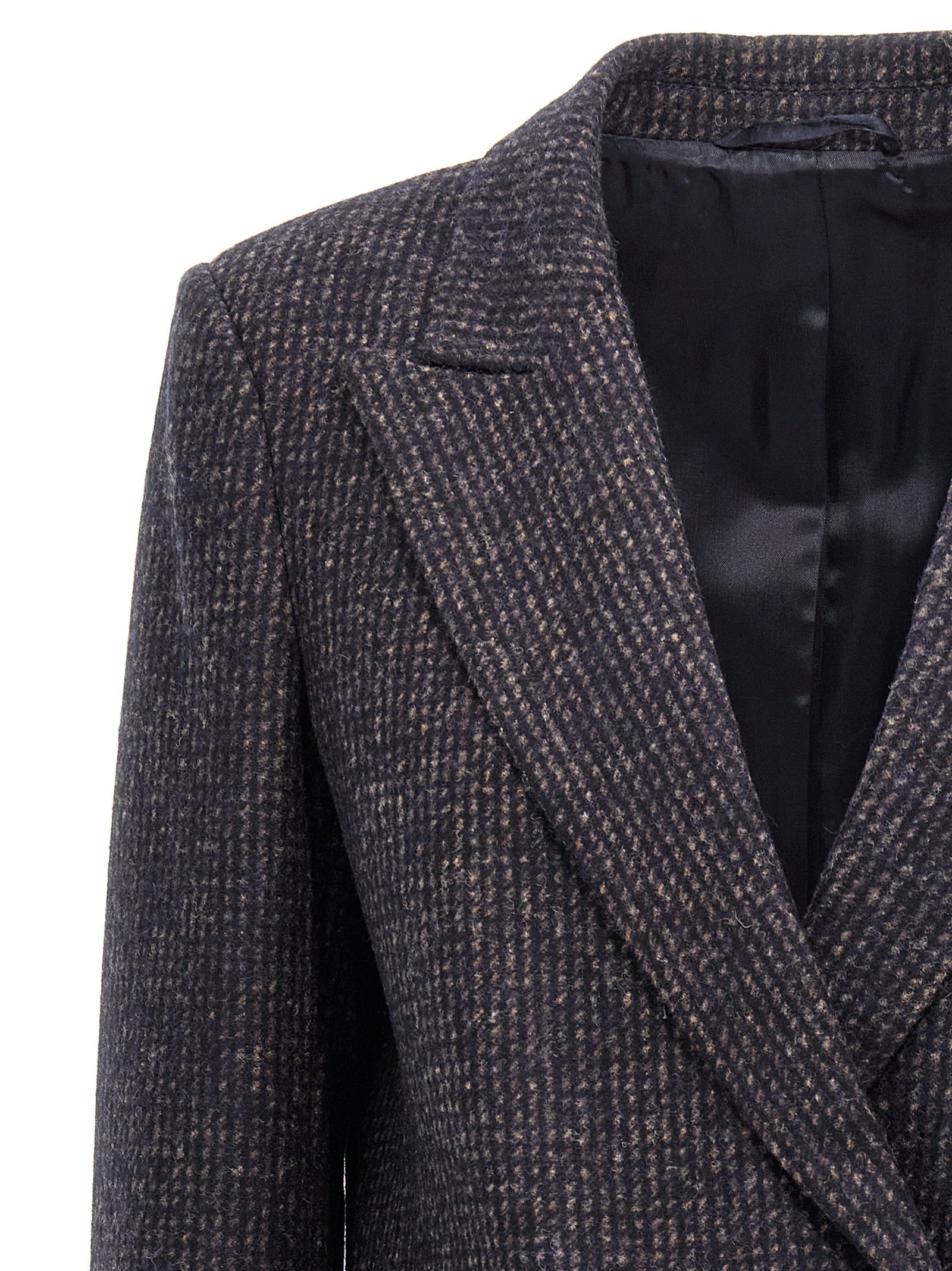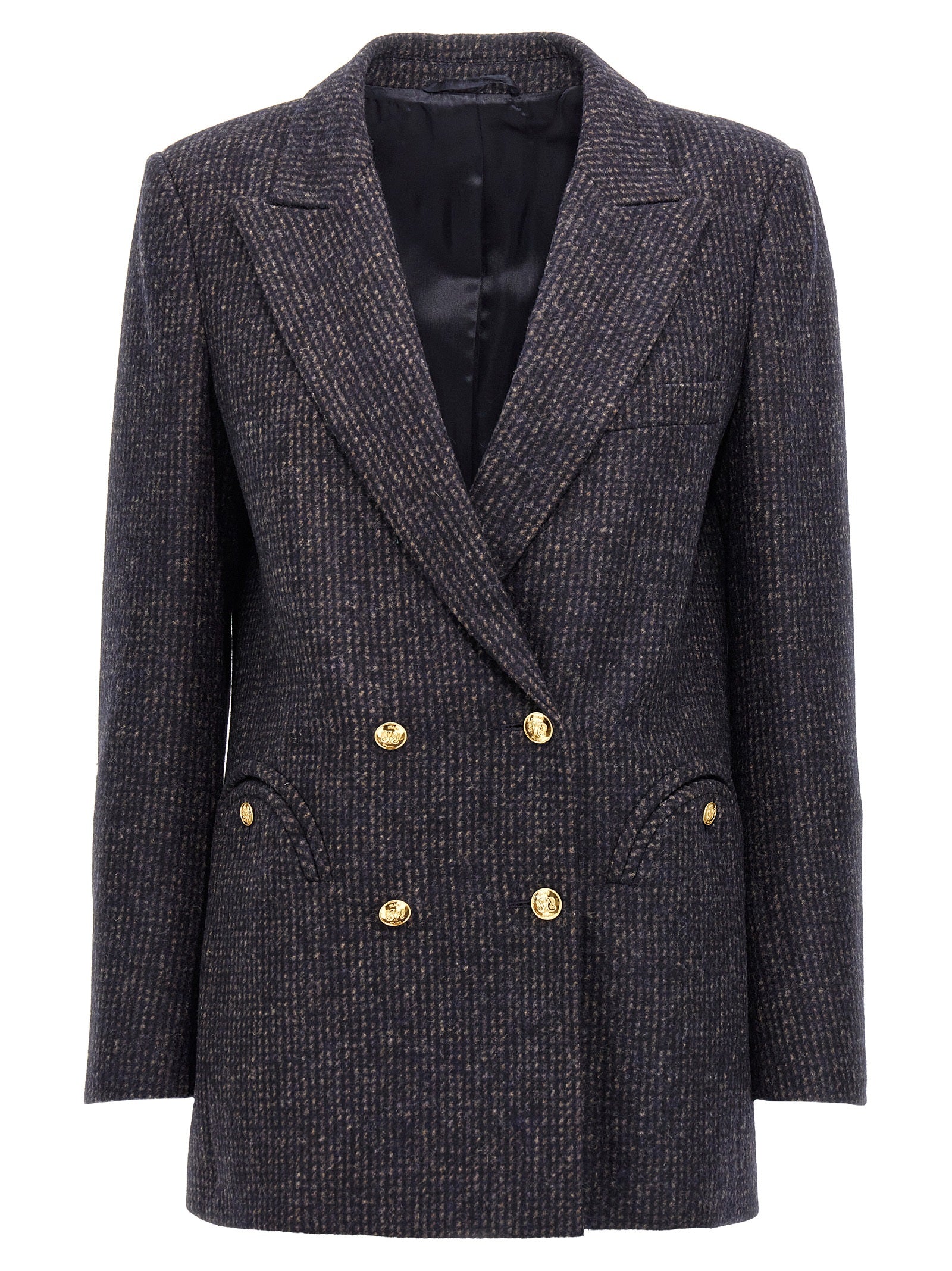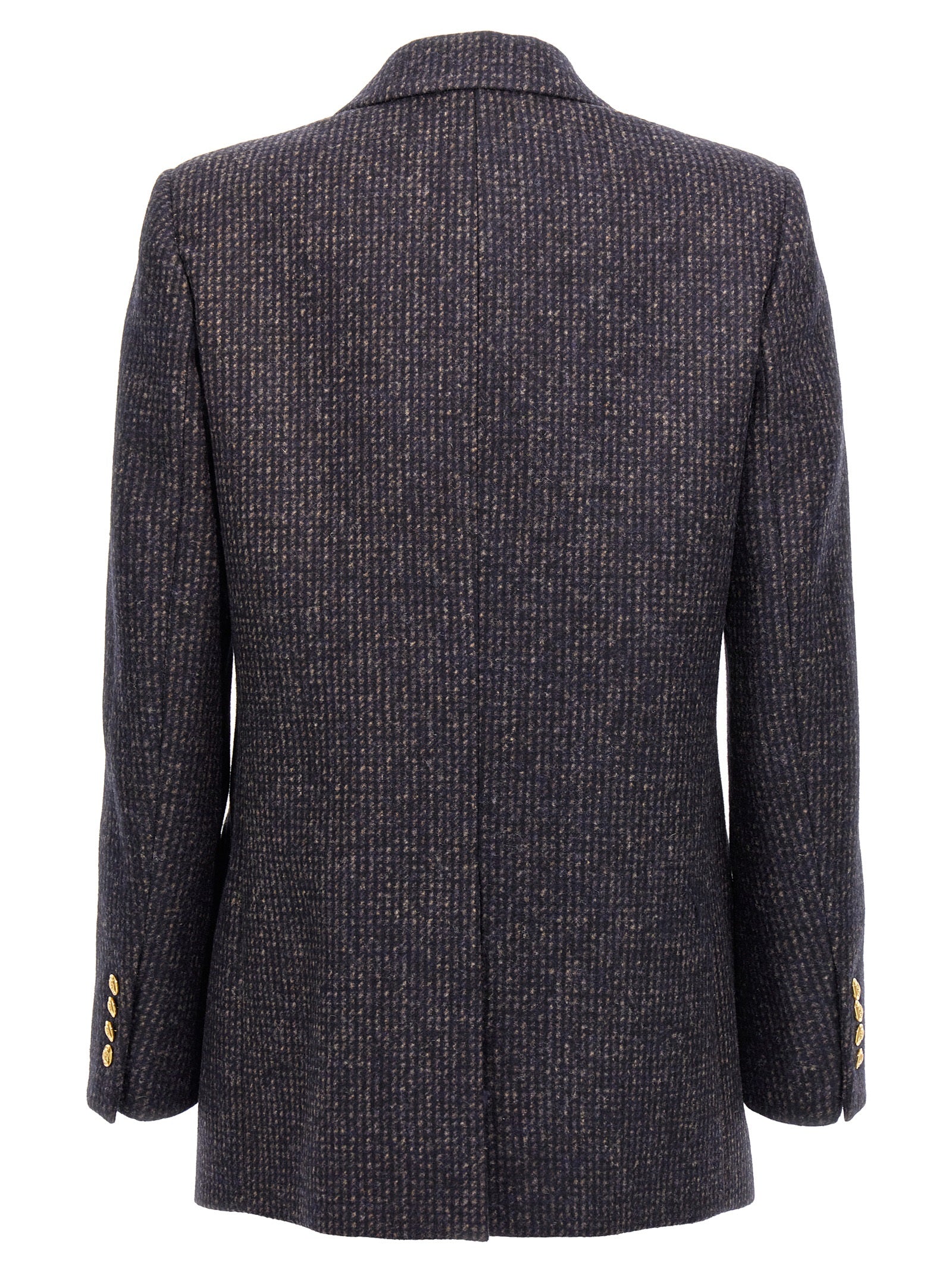 'Tatiana Everyday' check alpaca blend blazer jacket with double-breasted button closure, pockets, padded shoulders, long sleeves, back split.