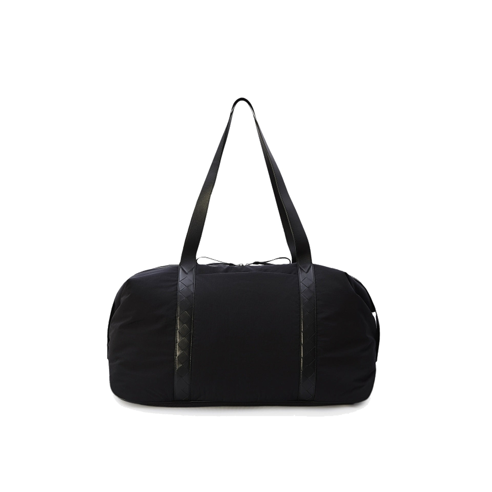 - Composition: 100% Nylon - Leather detail - One internal zipped pocket - Two top handles - height 25 cm - Top zip closure - Main compartment - Length 57 cm - Width 30 cm - Front leather logo patch - Made in Italy -