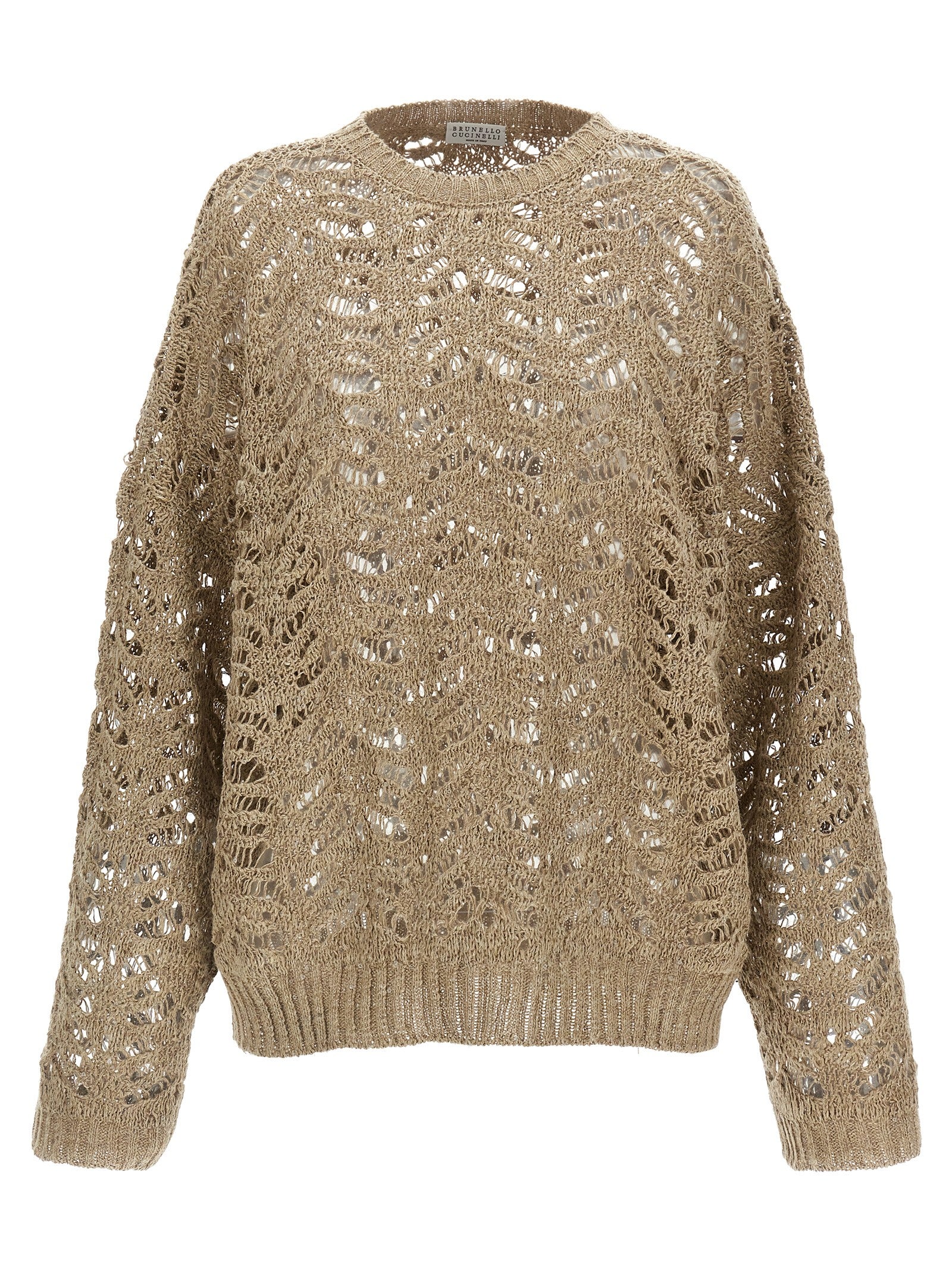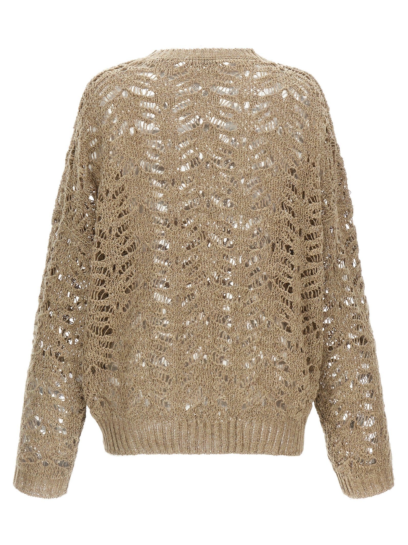 Ribbed Net linen Dazzling sweater, with crewneck, long sleeves with cuffs and dropped shoulder.