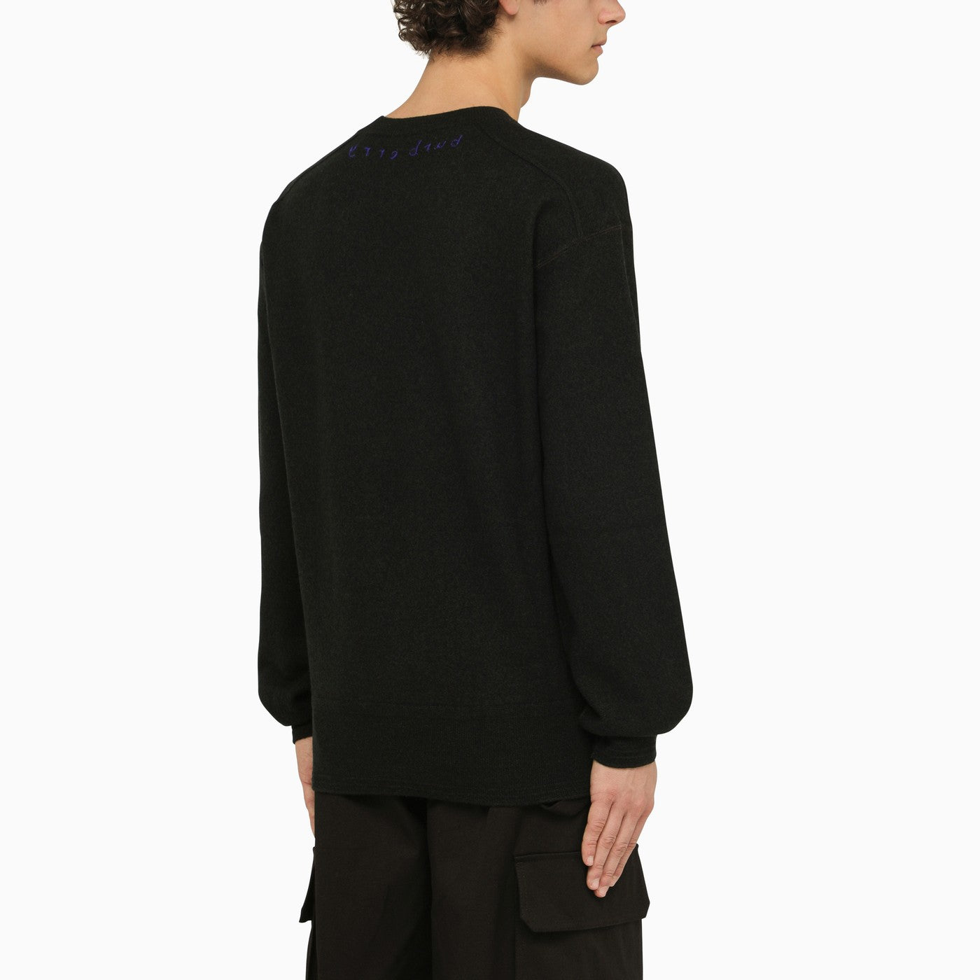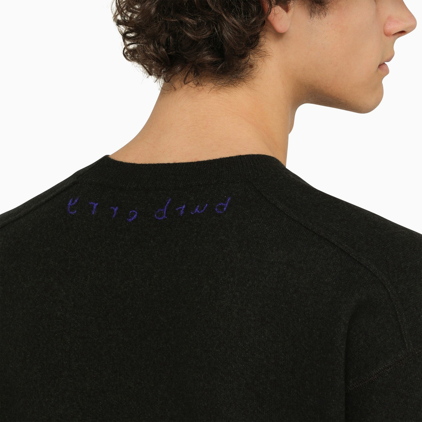Crew-neck sweater by Burberry in black wool featuring logo embroidery on the back, ribbed collar and loose fit.