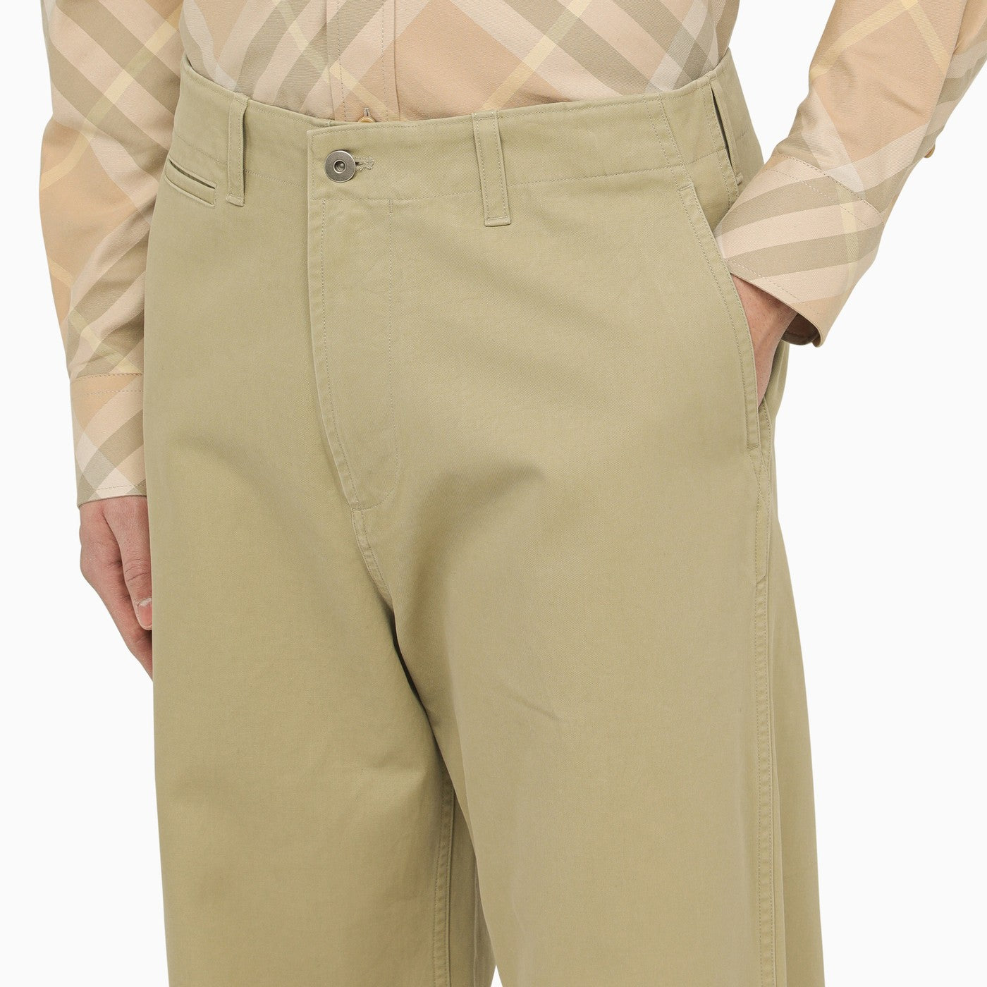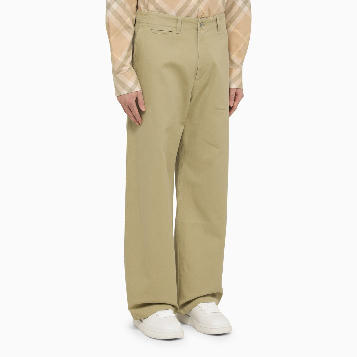 Straight trousers by Burberry in light sage cotton featuring a wide-leg design, belt loops, a button and zip fly, a welt pocket, side pockets and welt pockets to the rear.