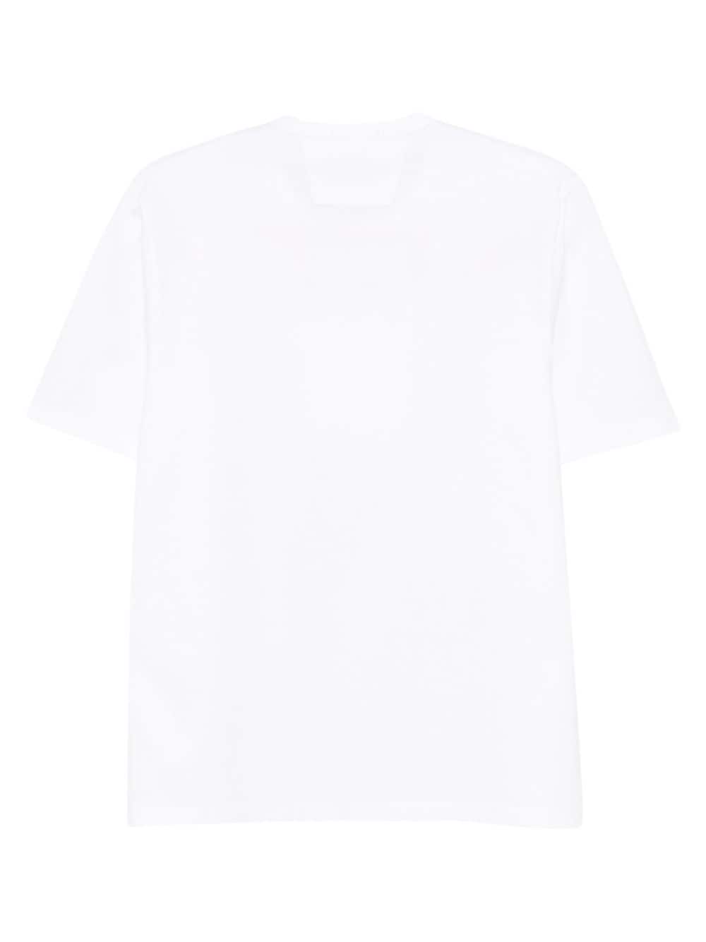 white cotton jersey texture crew neck short sleeves logo patch to the front straight hem