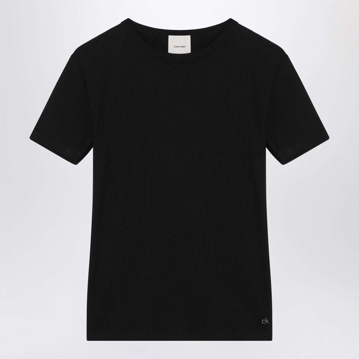Calvin Klein black modal crew neck T-shirt, featuring short sleeves, ribbed design, and logo embroidery on the hem.