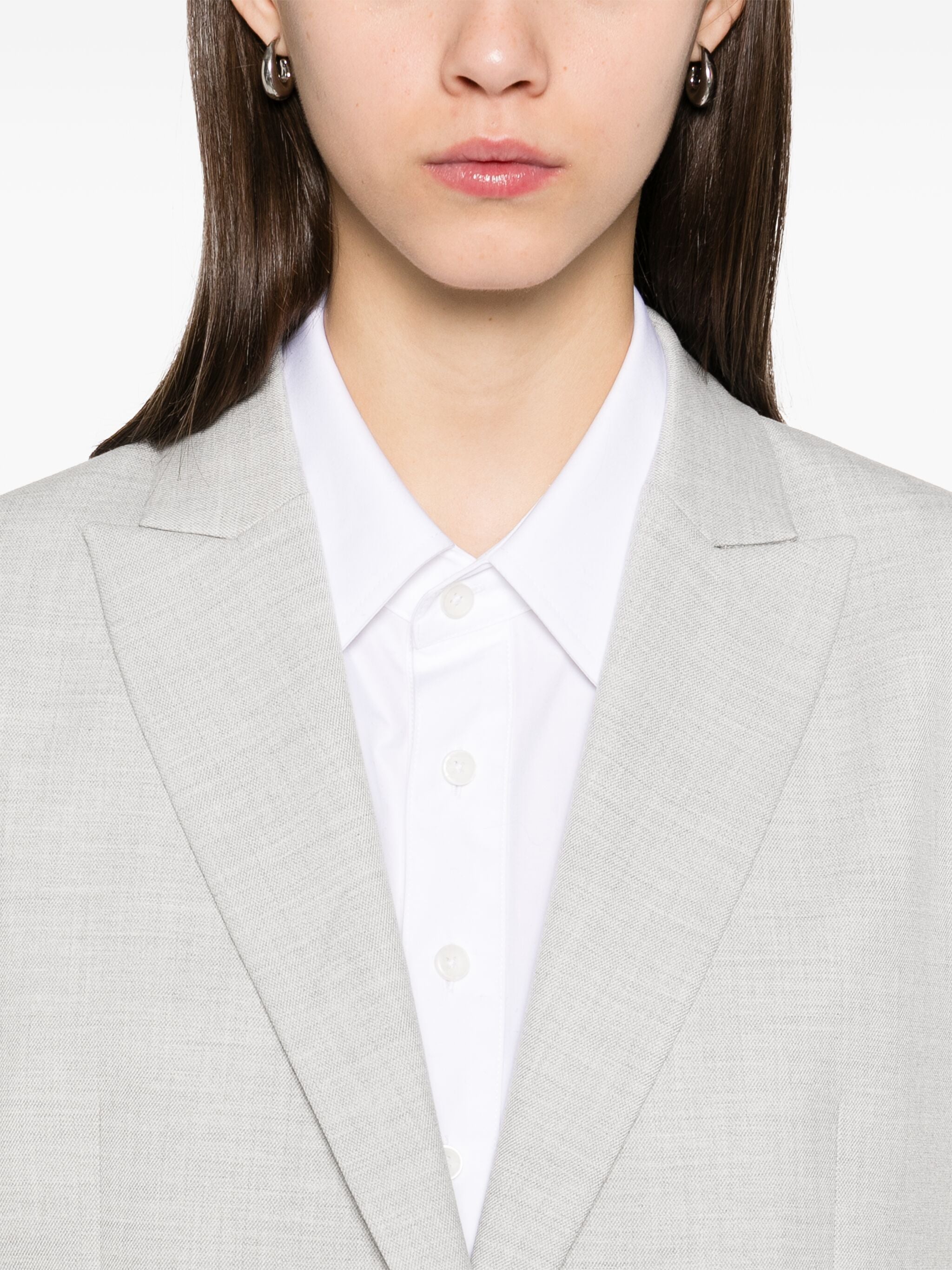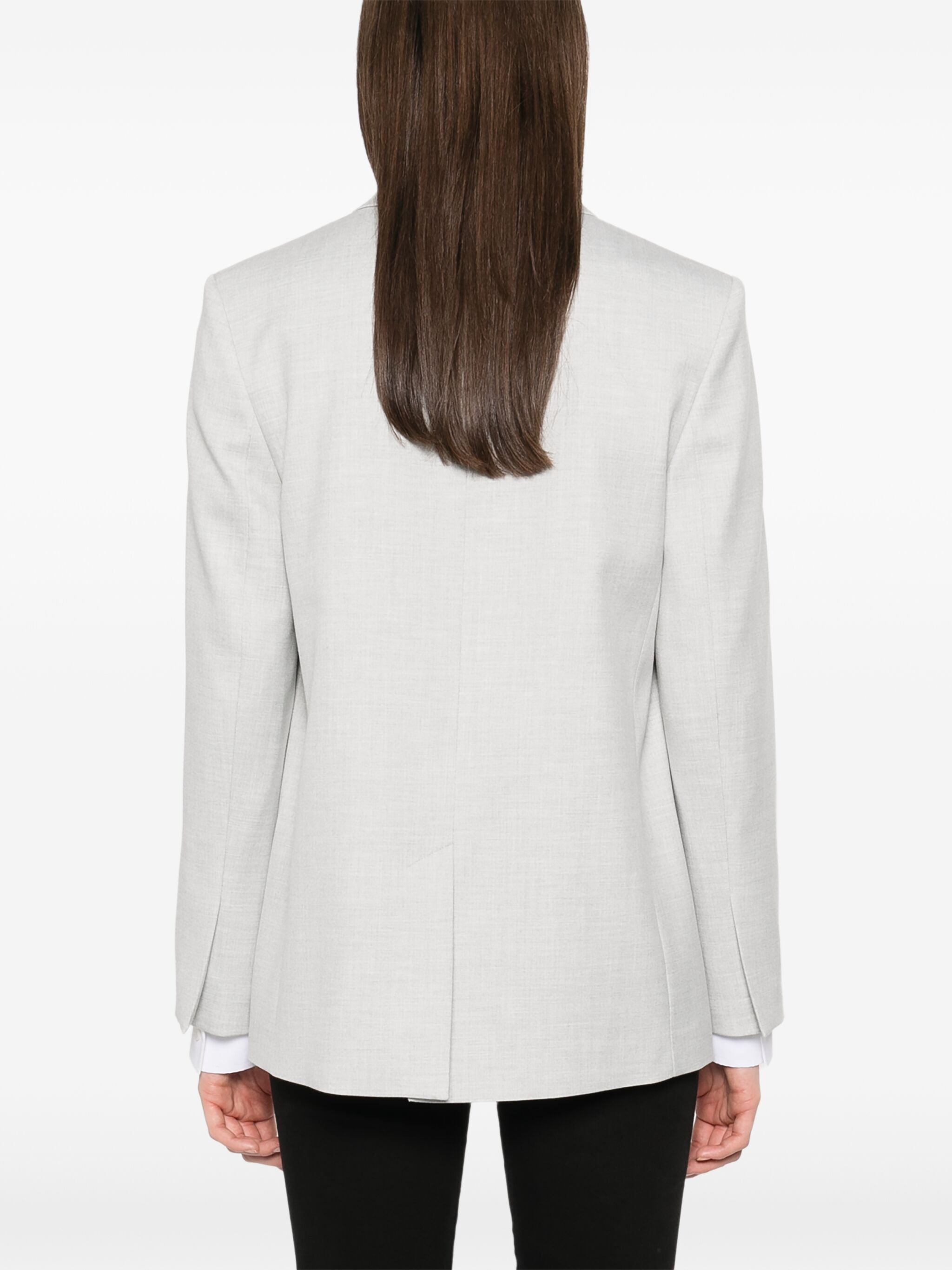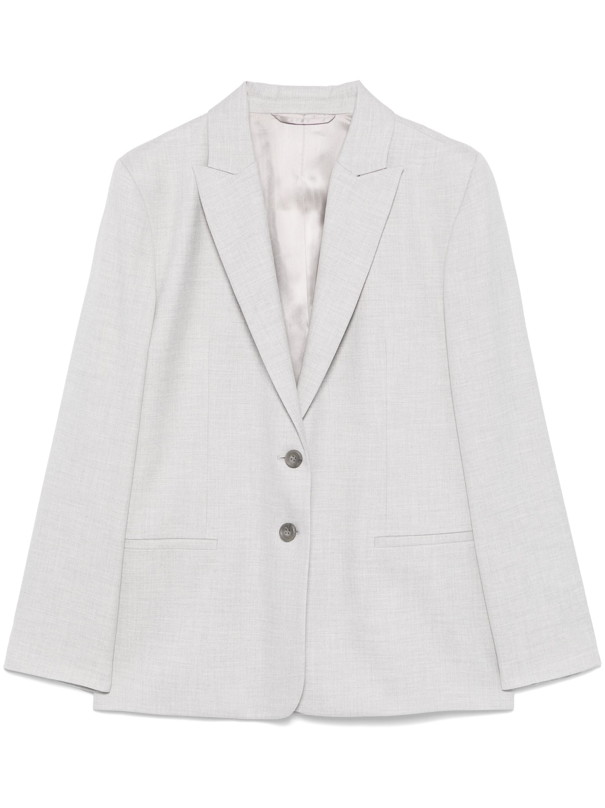 Blazer in flanella effetto mélange grigio mélange di Calvin Klein, con chiusura frontale a bottoni e spalline per una silhouette strutturata. Le due tasche a filetto laterali e la fessura posteriore americana completano il design elegante e funzionale. Perfetto per un look sofisticato, ideale per occasioni formali o casual-chic.