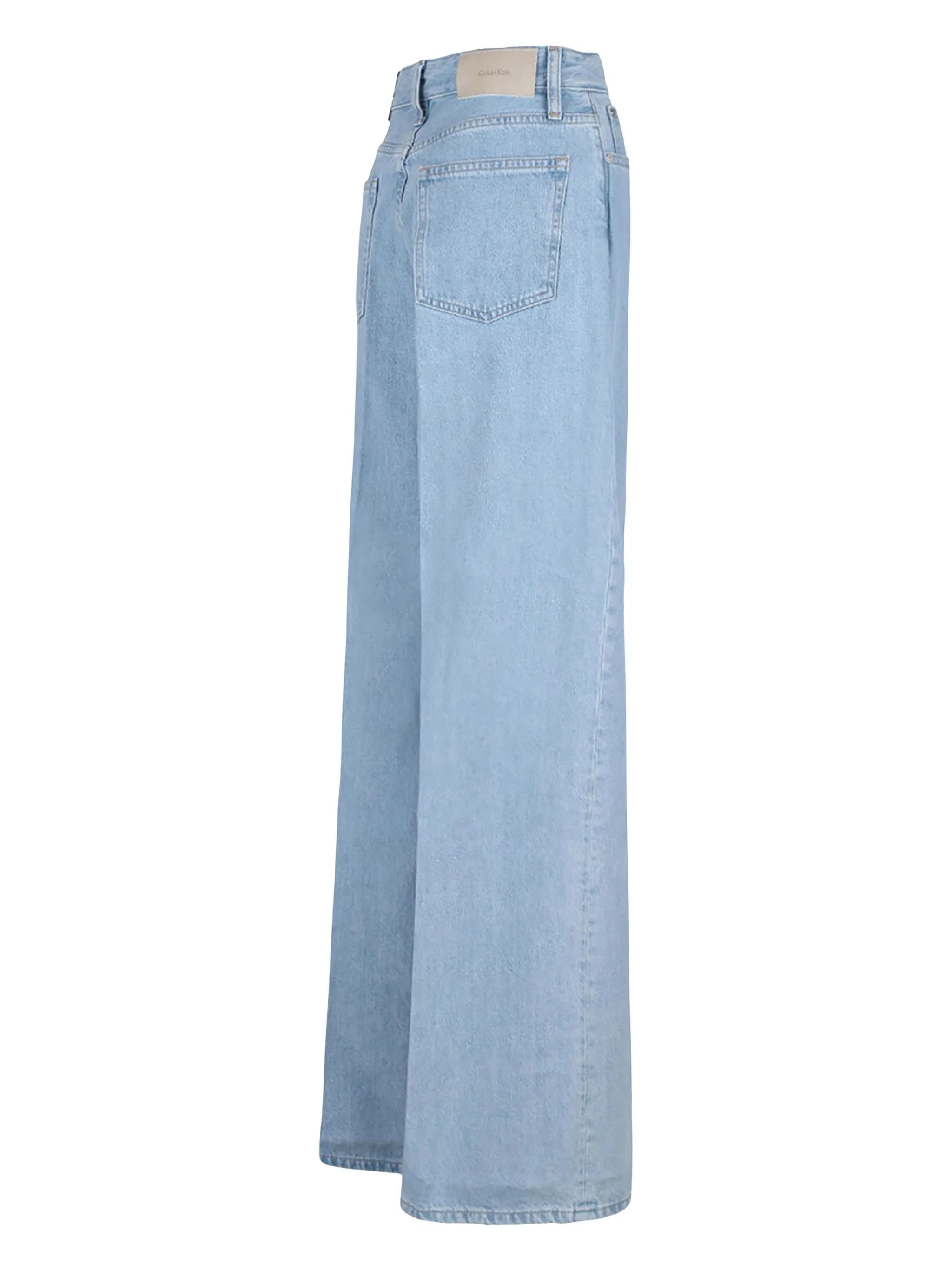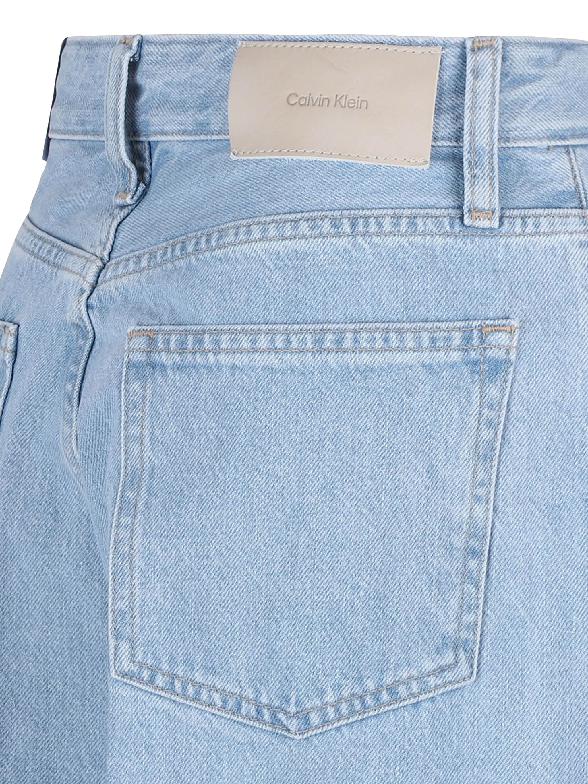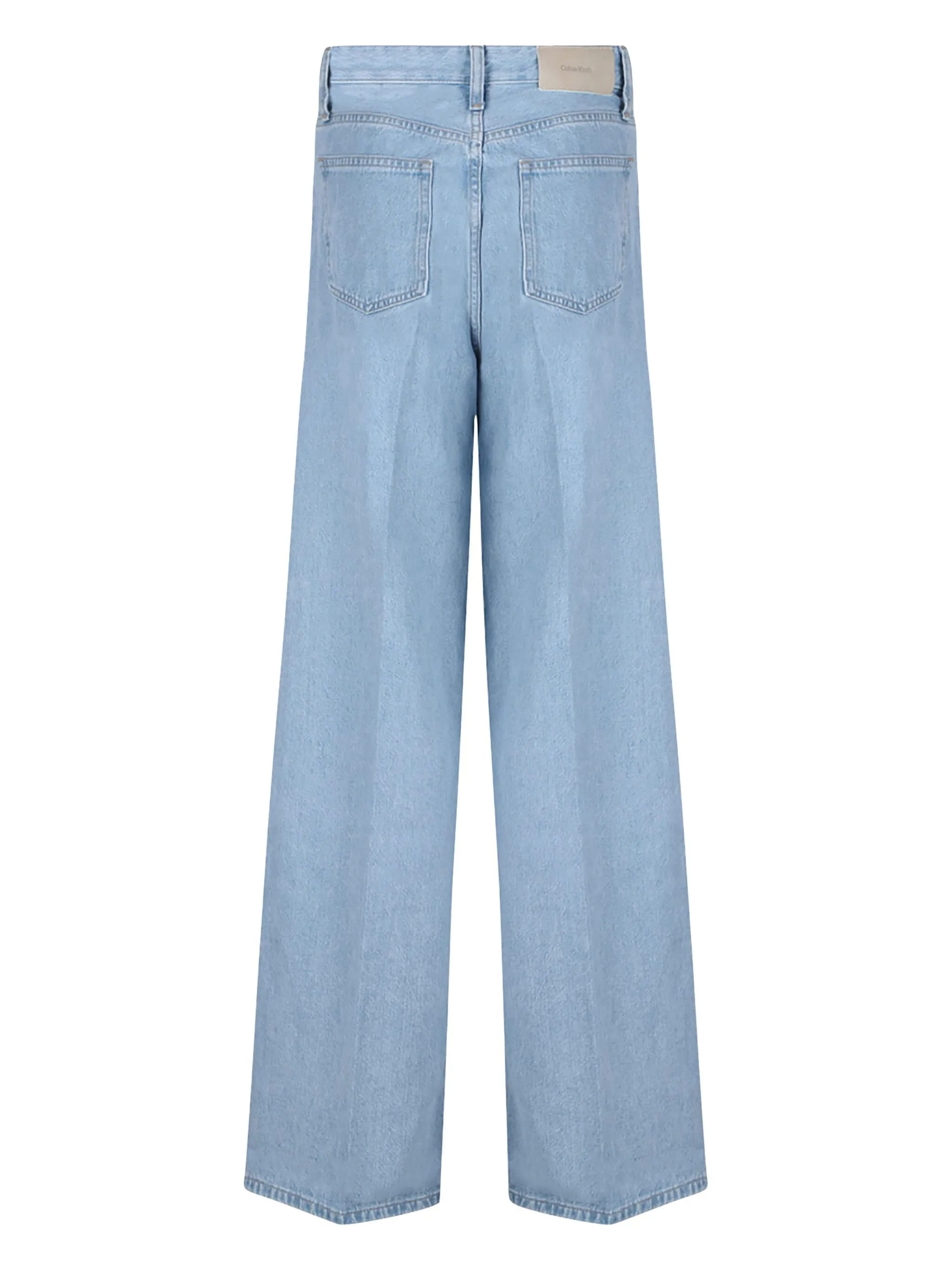 Questi jeans a vita alta con gamba larga sono il perfetto equilibrio tra comfort e stile. Realizzati con il 20% di cotone riciclato, offrono un taglio moderno e una vestibilità comoda. Il lavaggio azzurro ghiaccio e lo stemma in pelle con logo Calvin Klein aggiungono un tocco distintivo al look casual.