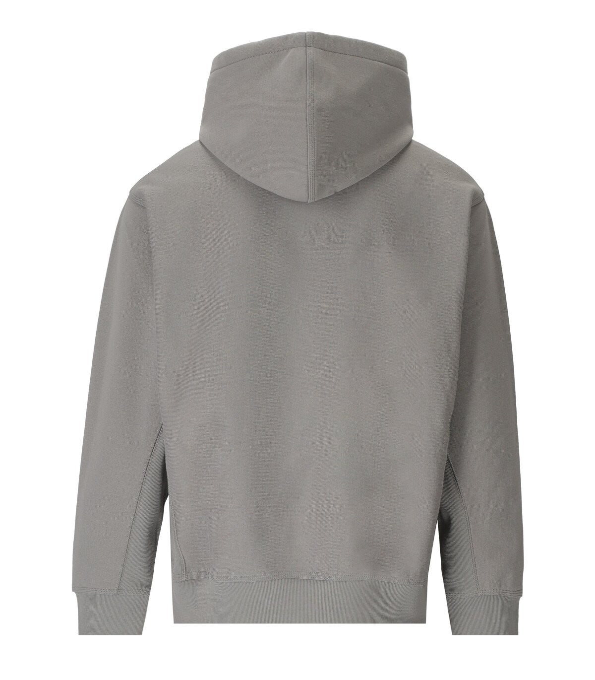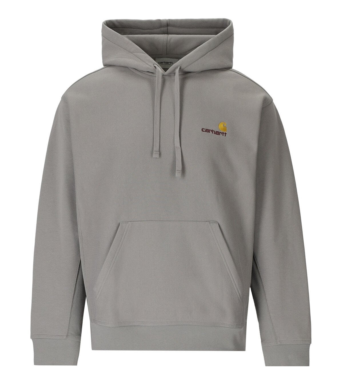 American Script hoodie by Carhartt Wip made of grey fleece cotton blend, decorated with logo embroidered on the chest, adjustable hood with drawstring and ribbed inserts on the sides and cuffs. Front pouch pocket. Composition: 80% cotton, 20% polyester.