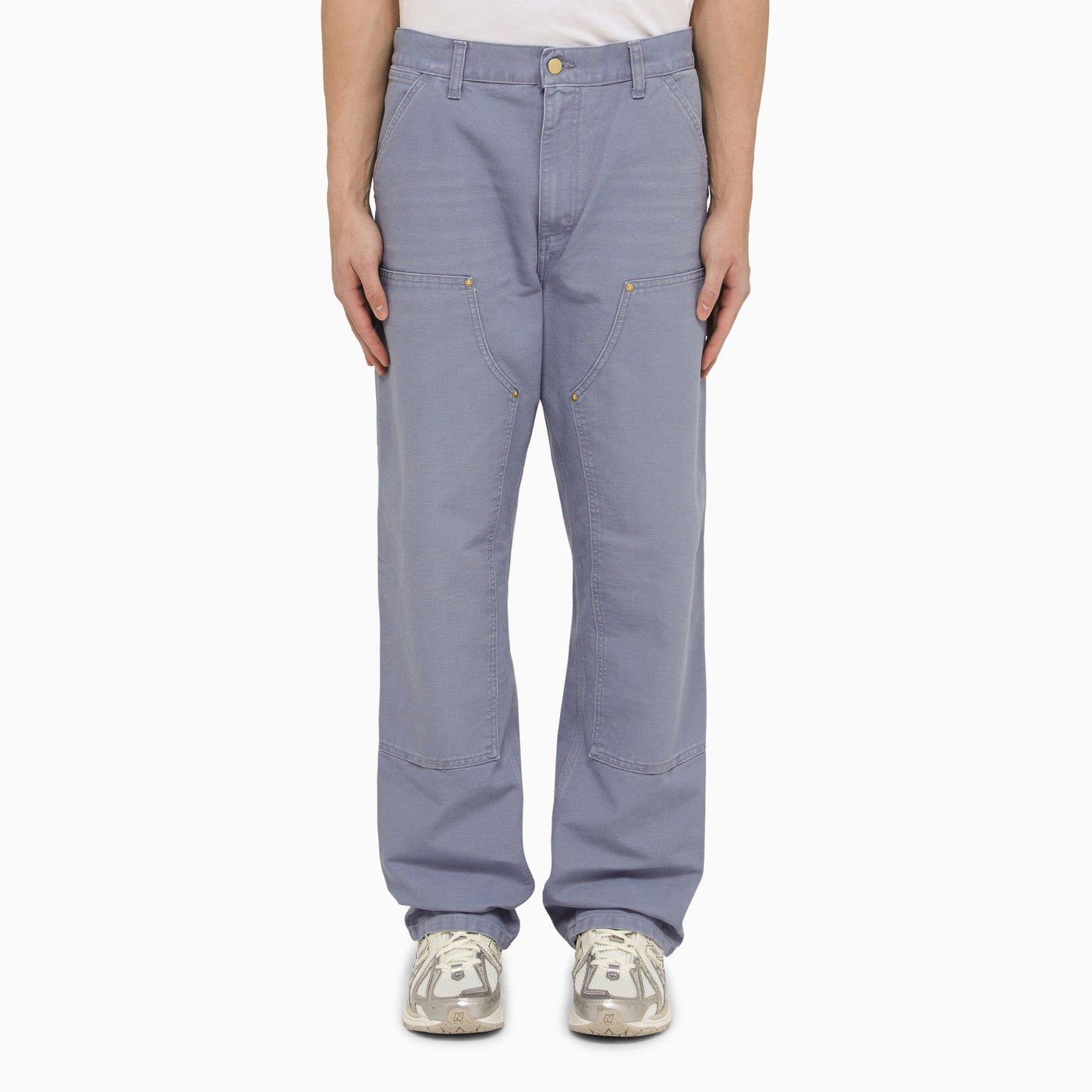 Bay blue-coloured organic cotton trousers by Carhartt WIP, featuring several front and back pockets, waist loops and logo patch.