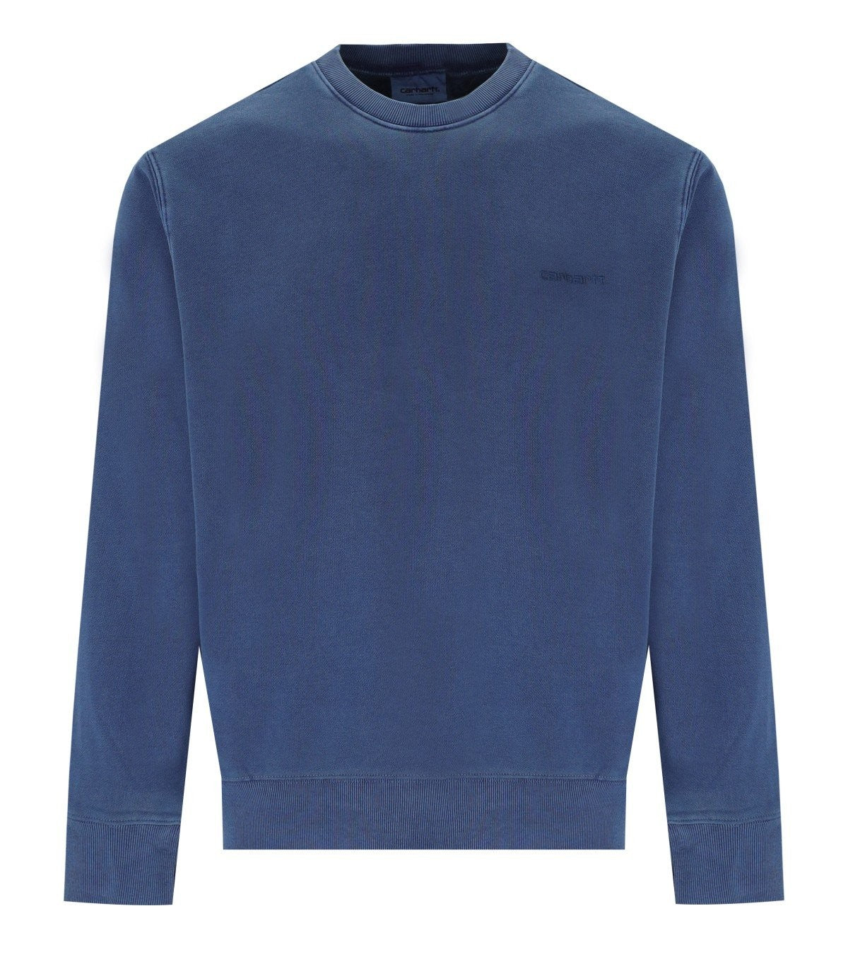 Duster Script Sweatshirt by Carhartt Wip made of blue cotton, garment-dyed, with tone-on-tone embroidered logo on the chest. Ribbed collar, cuffs, and hem. Loose fit. Composition: 100% cotton.