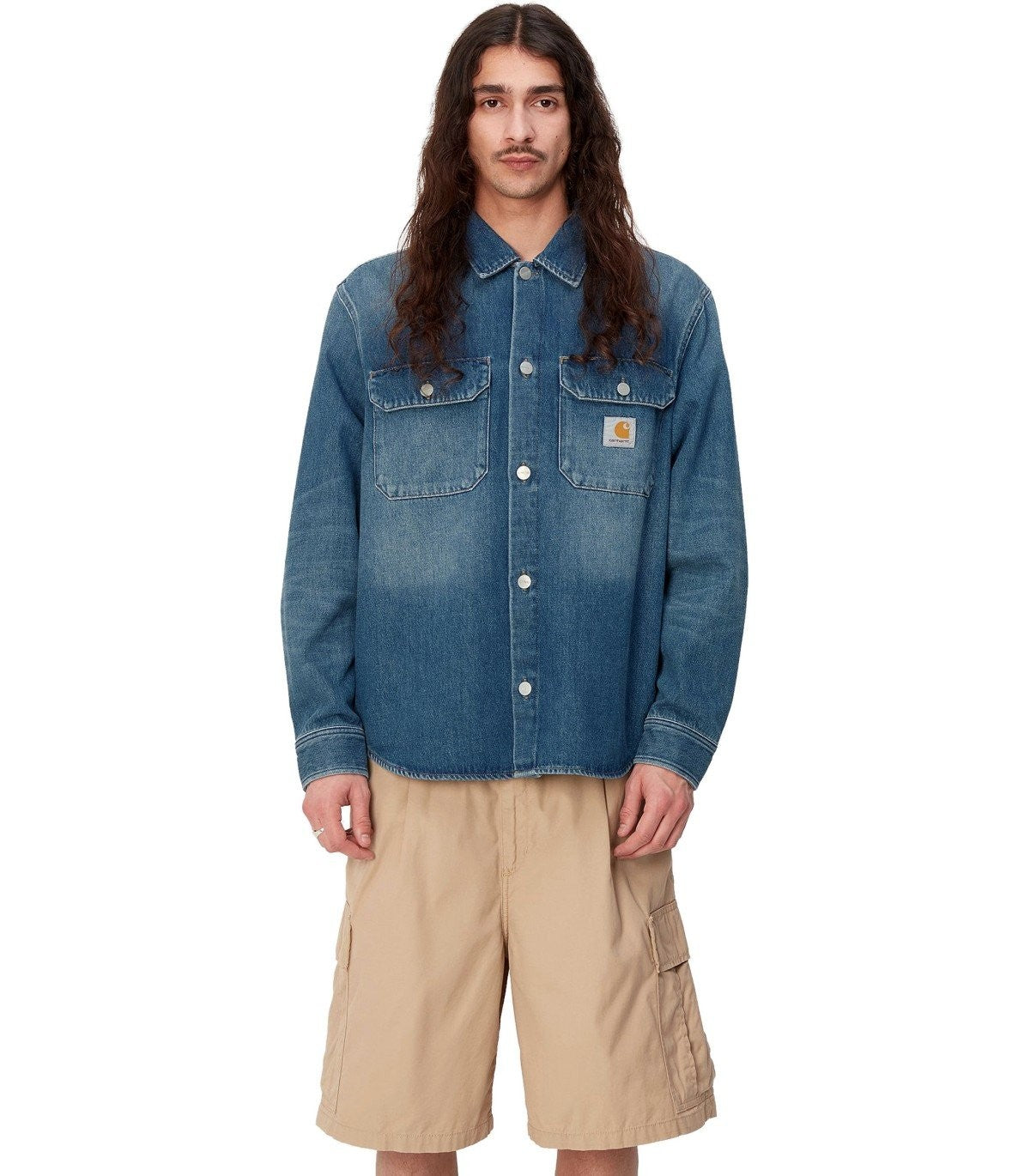 Harvey shirt jacket by Carhartt Wip made of medium wash cotton denim. Chest pockets with iconic logo patch. Button closure. Unlined, loose fit. The model is 186 cm tall and wears size M. Composition: 100% cotton.