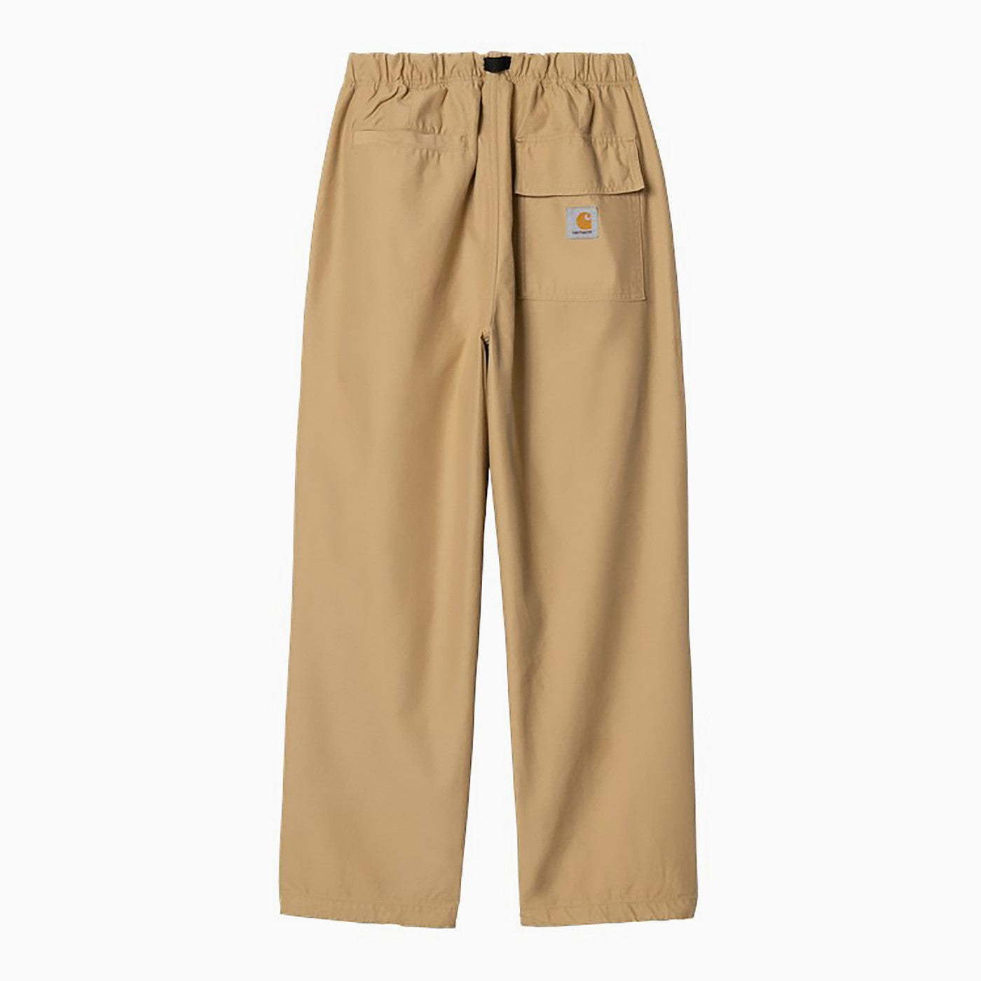 Bourbon-coloured, mid-weight cotton twill trousers from Carhartt WIP featuring a comfortable tapered leg, a regular waist, two side pockets, two back pockets, one of which has a flap closure, a relaxed tapered fit, an elasticated waistband with an adjustable waistband and adjustable leg openings. The model is finished with a square fabric label."