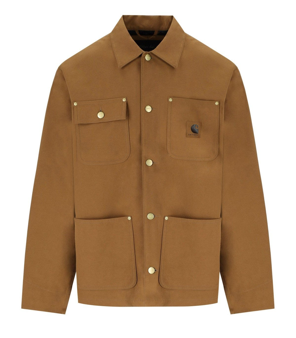 Carhartt Wip Michigan jacket is made of synthetic suede effect tobacco colored fabric. Lined interior, front patch pockets and closure with gold buttons. Tone-on-tone logo patch. Loose fit. Composition: 50% nylon, 50% polyurethane. Lining: 100% polyester.