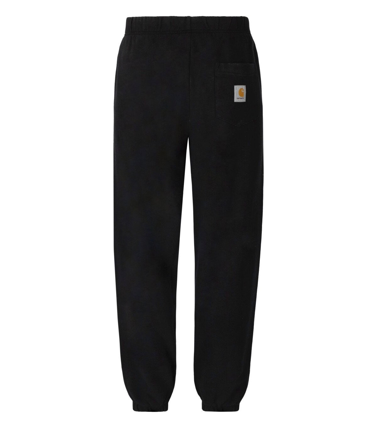 Carhartt Wip jogger made of black heavy cotton jersey, featuring welt pockets on the front and patch pocket on the back with iconic logo patch. Balloon fit. Composition: 100% cotton.
