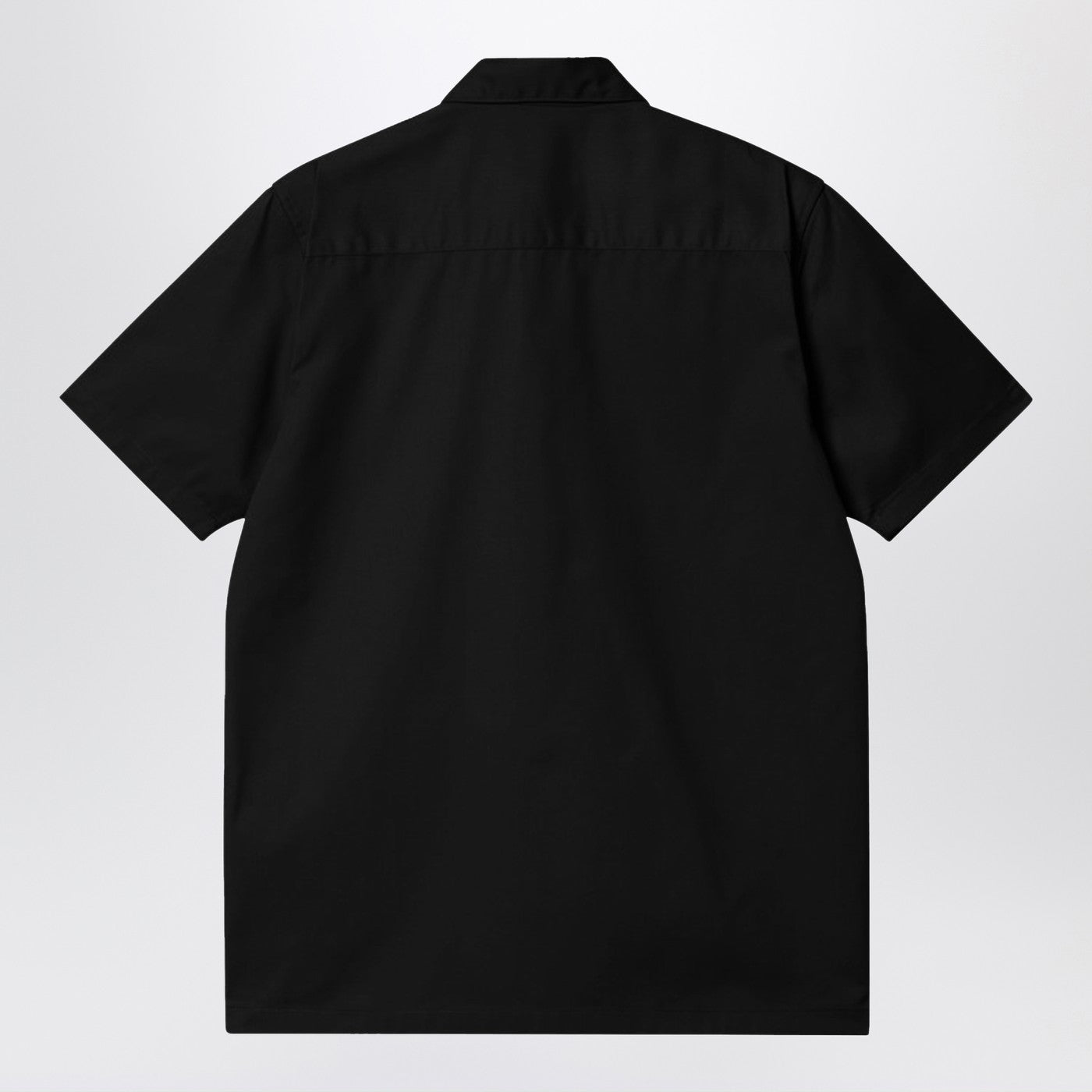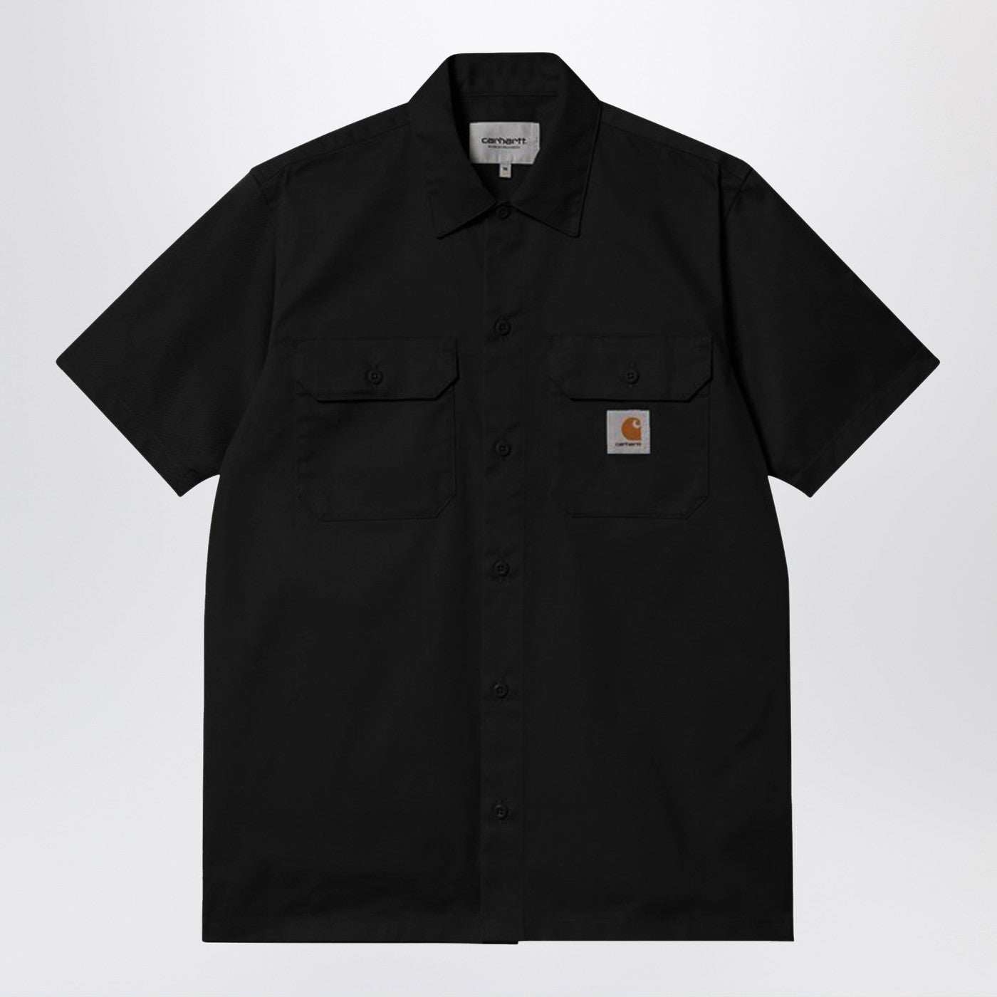 Black polyester-cotton blend shirt from Carhartt WIP featuring two patch pockets on the chest with flap and button fastening, square fabric logo label, short sleeves, front button placket and straight hem.