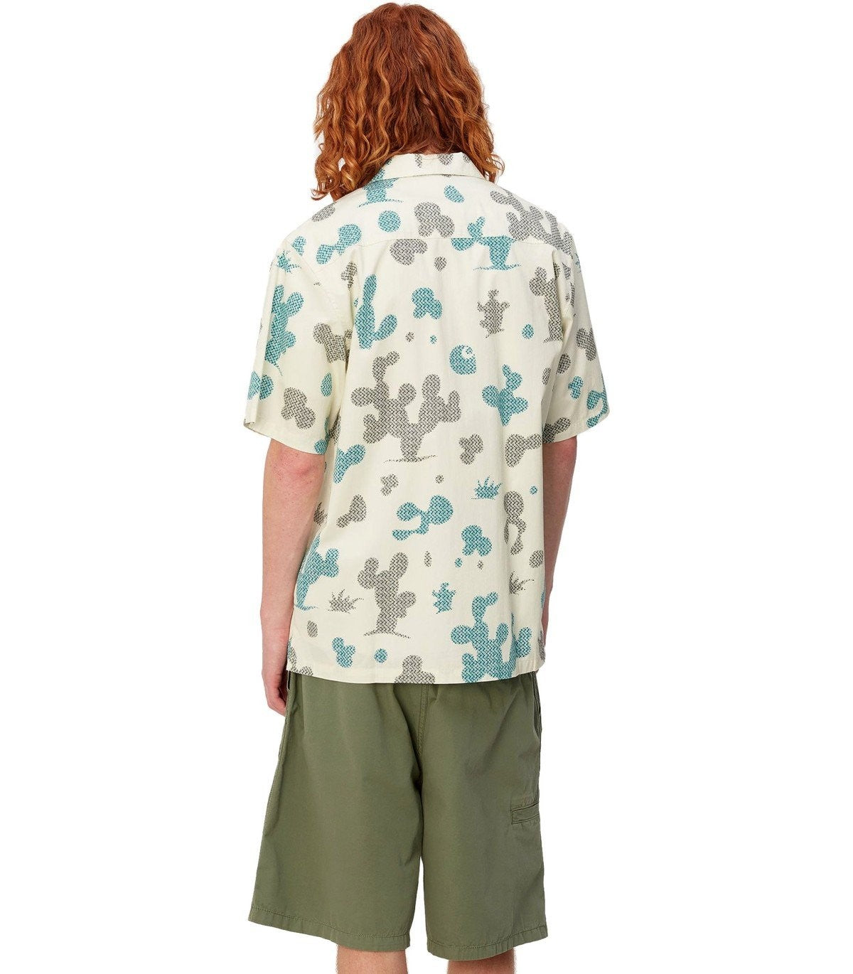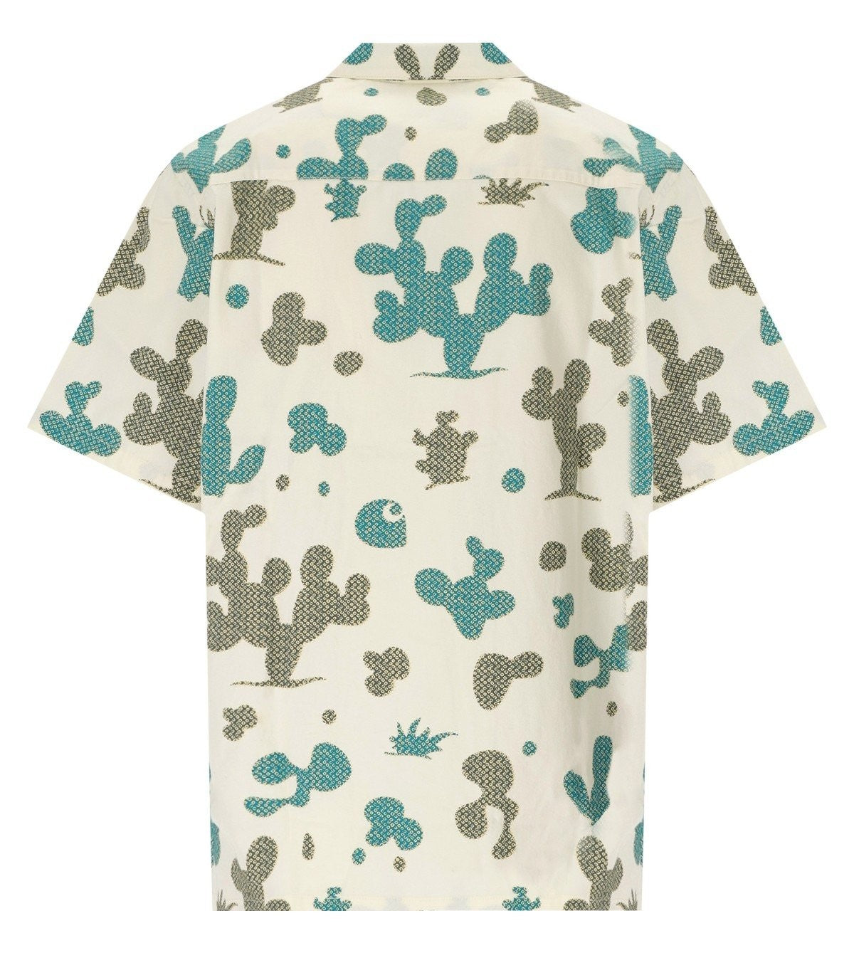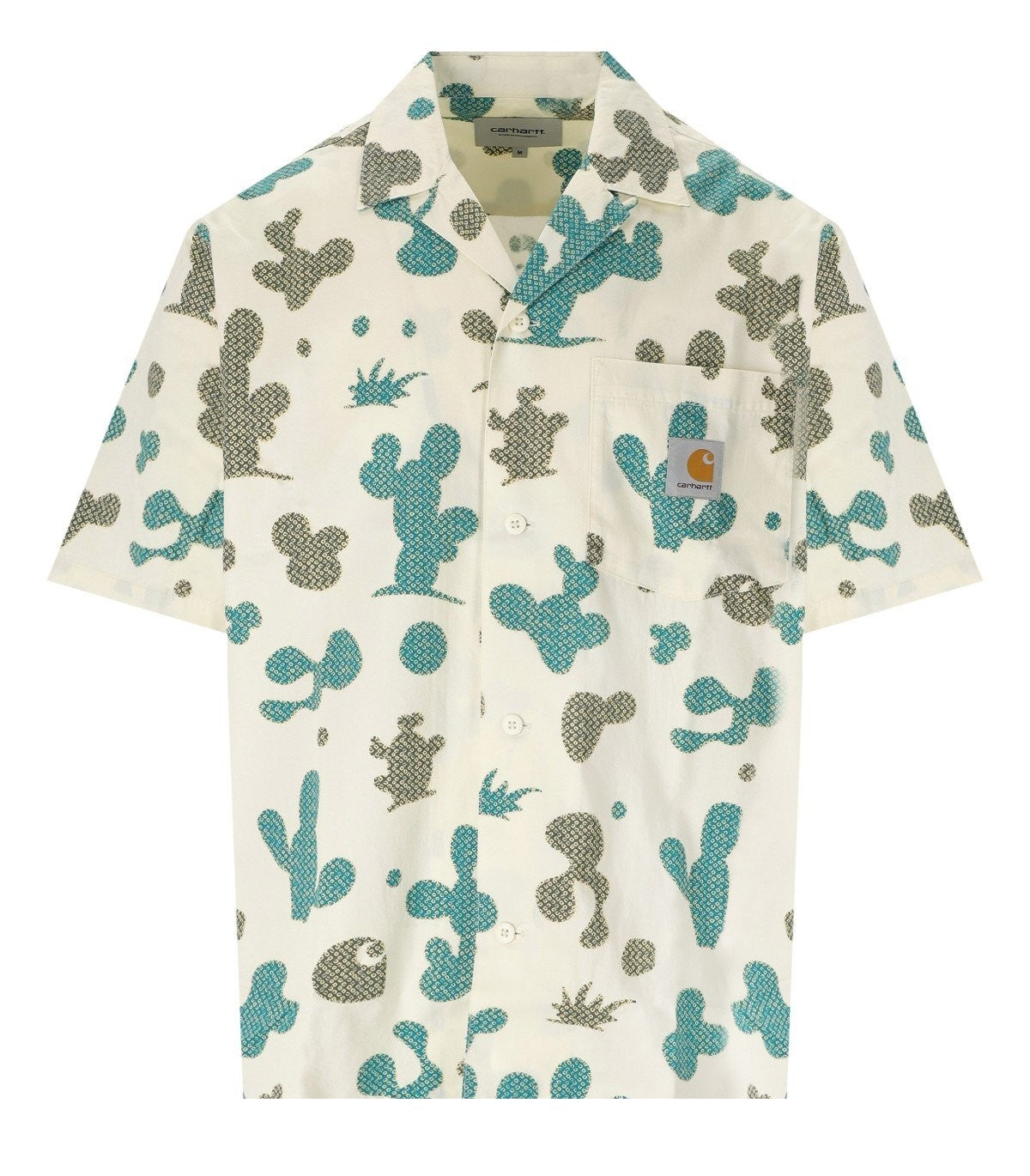 S/S Opus by Carhartt Wip made of cream colored cotton twill, decorated with all-over cactus print in shades of green. Applied pocket on the front, logo patch on the front. Button closure. Loose fit. The model is 185 cm tall and wears size M. Composition: 100% cotton.