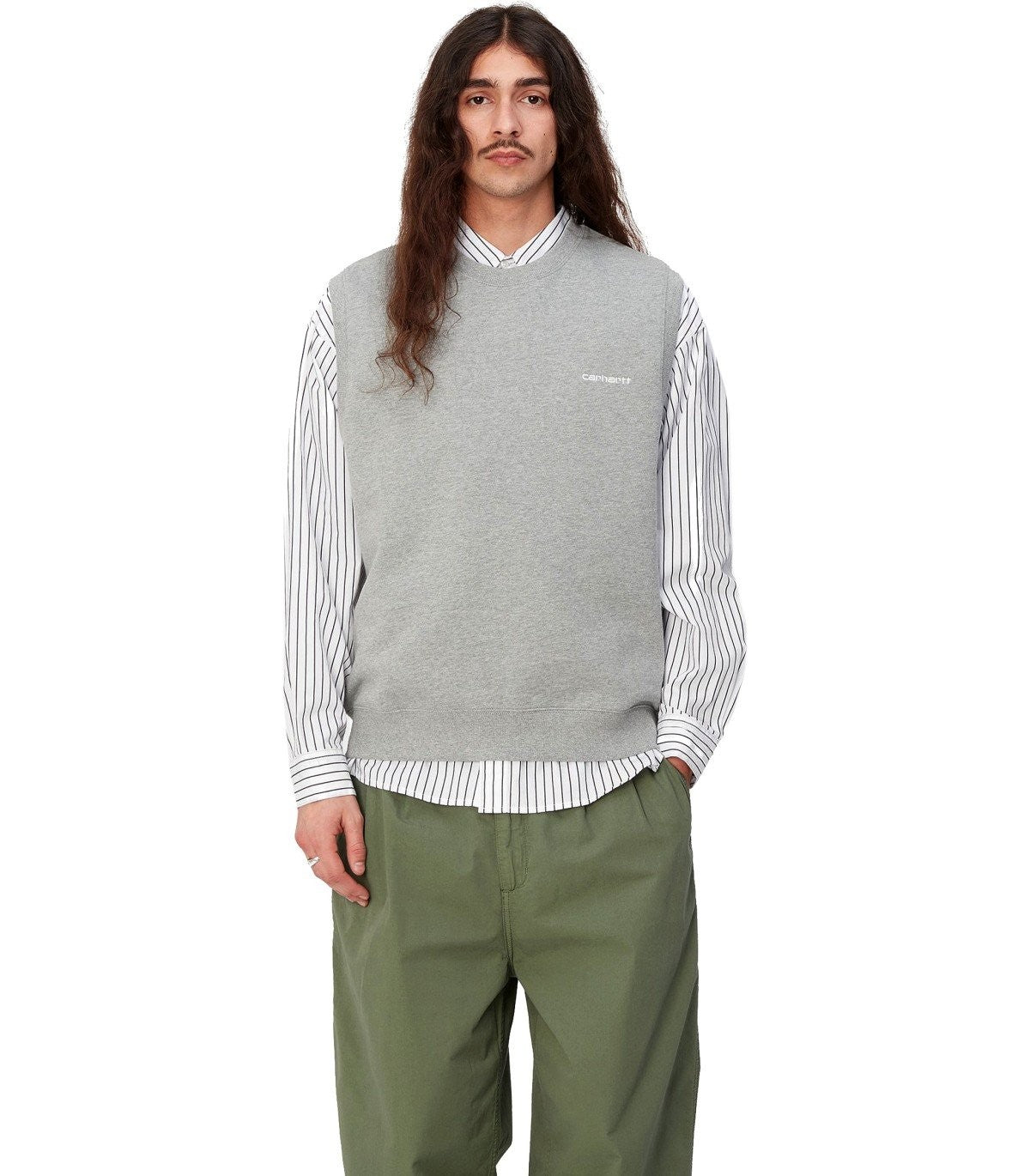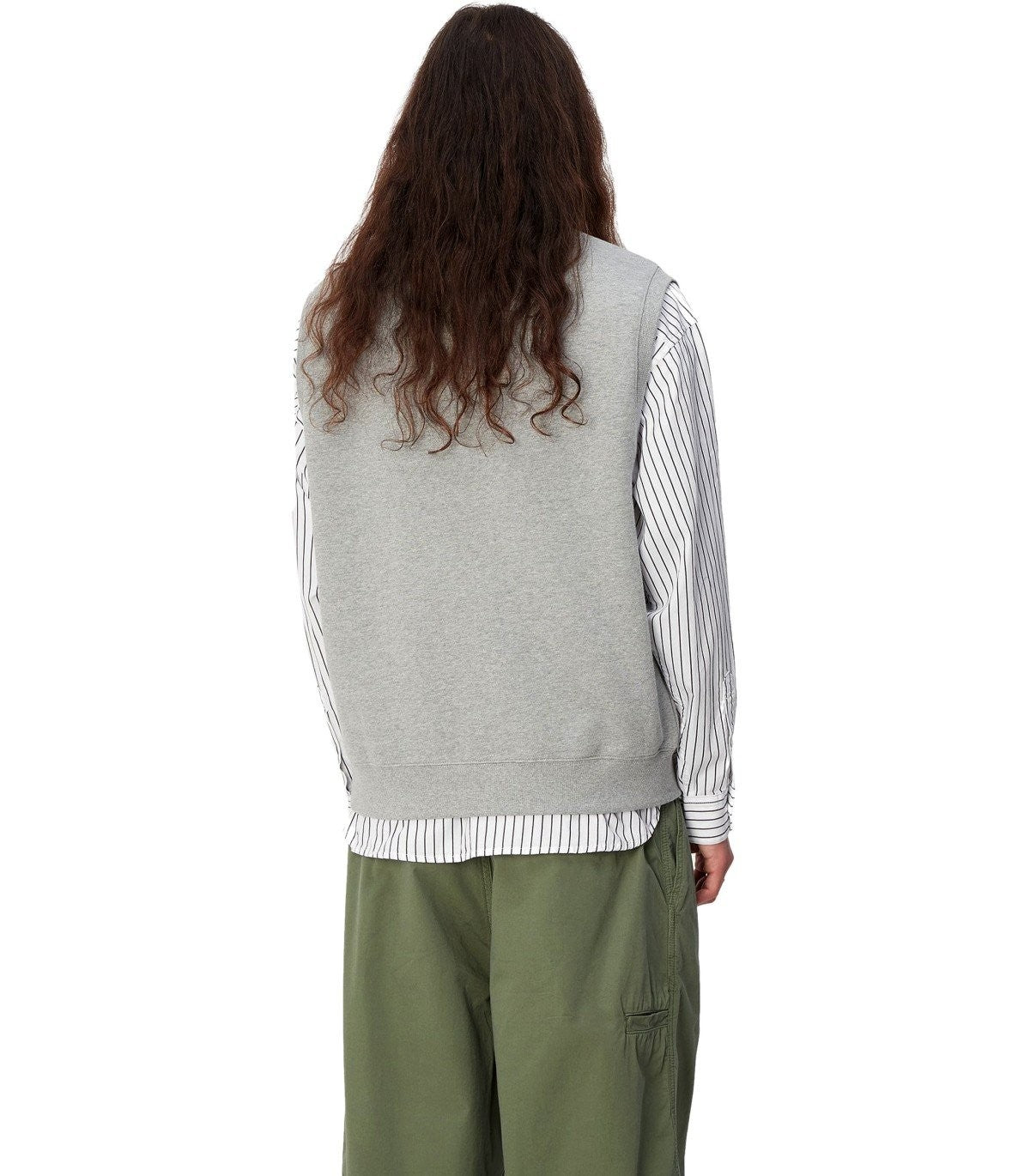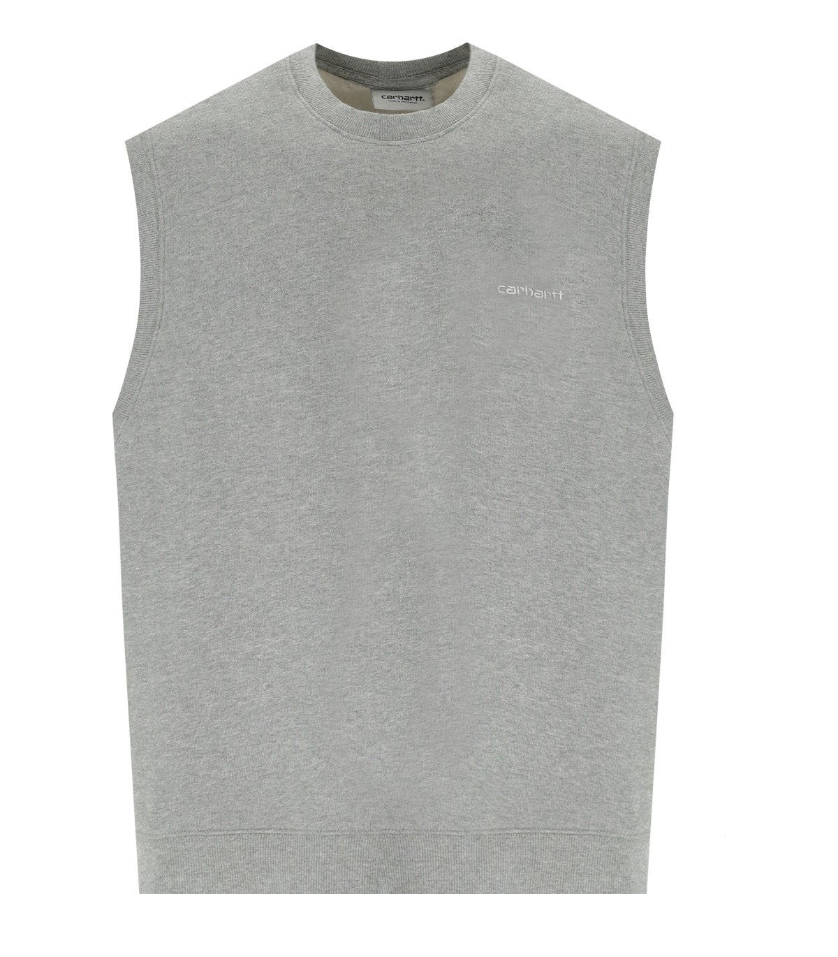 Carhartt Wip grey fleece cotton vest. Embroidered logo on the chest, ribbed edges. Regular fit. Composition: 100% cotton.