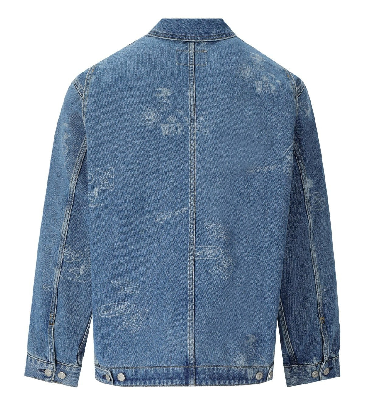 Carhartt Wip Stamp jacket made of light blue cotton denim, with subtle washed-out details and decorated with all-over print. Front pockets, synthetic leather logo label. Button closure, loose fit. Composition: 100% cotton.