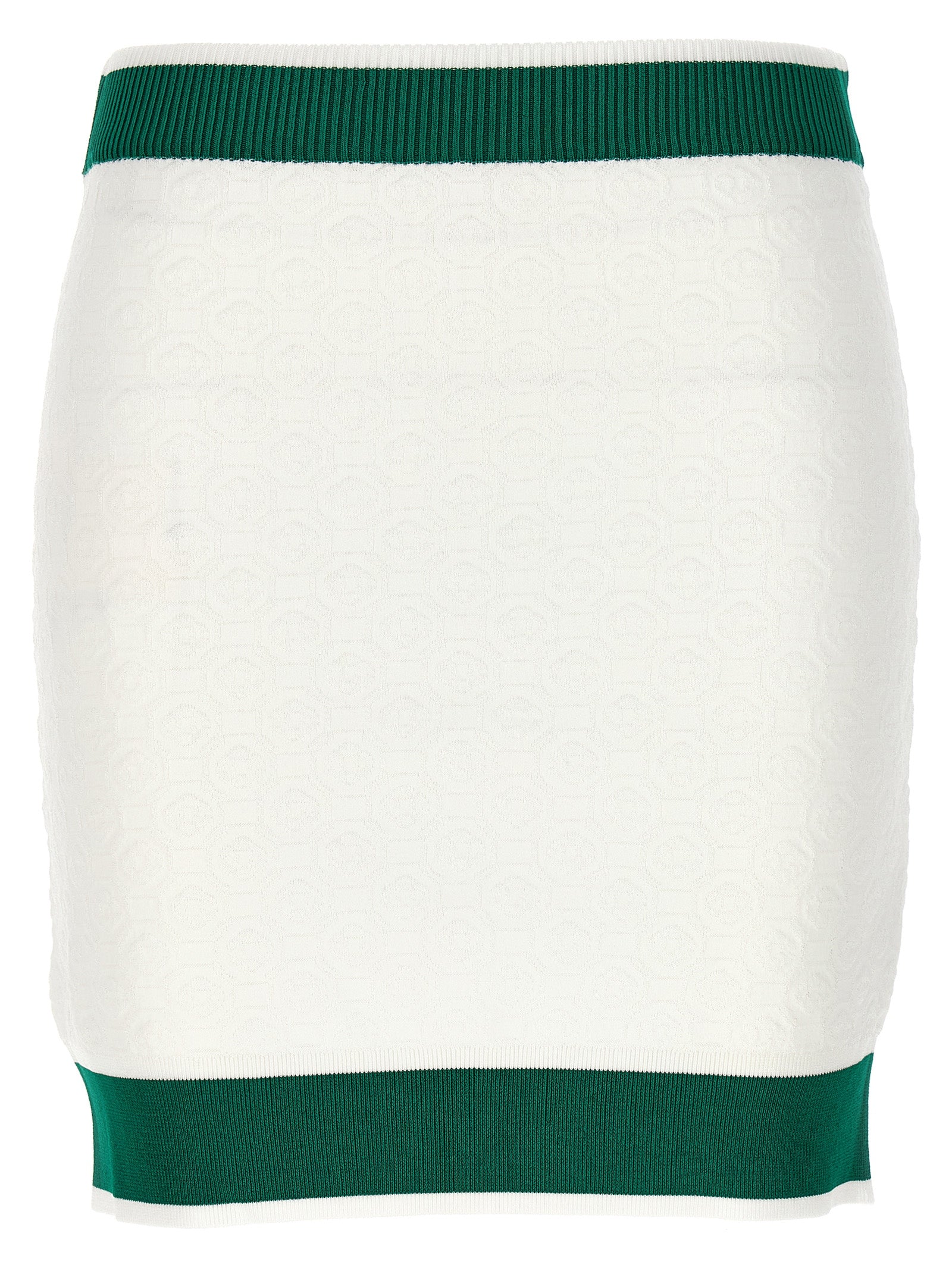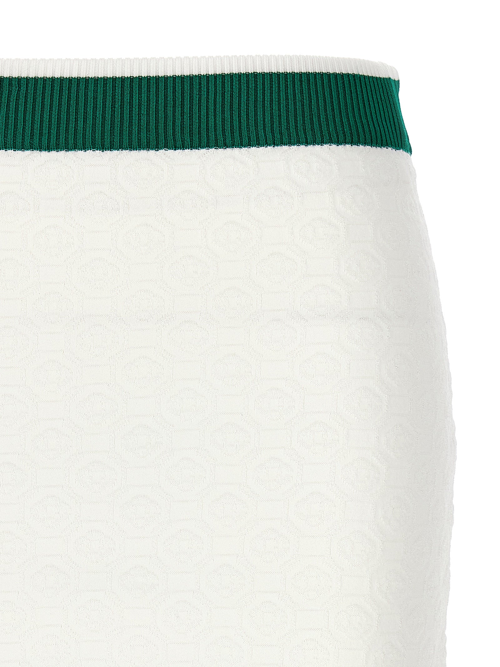 Viscose knit skirt with monogram logo, elastic waistband, and contrasting bands.