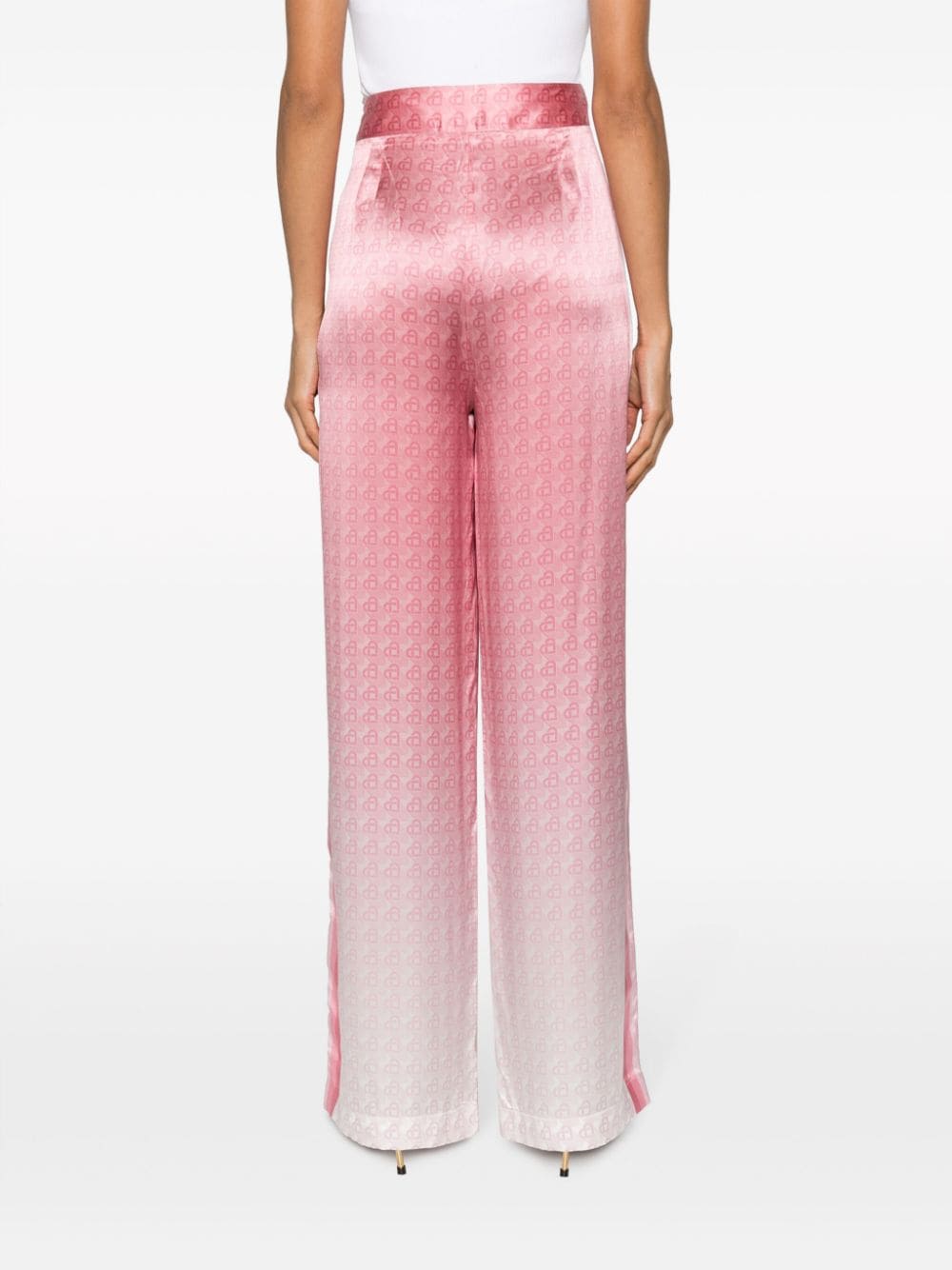 Morning City View silk trousers from CASABLANCA featuring light pink, silk, monogram pattern, high waist, two side slit pockets and wide leg.