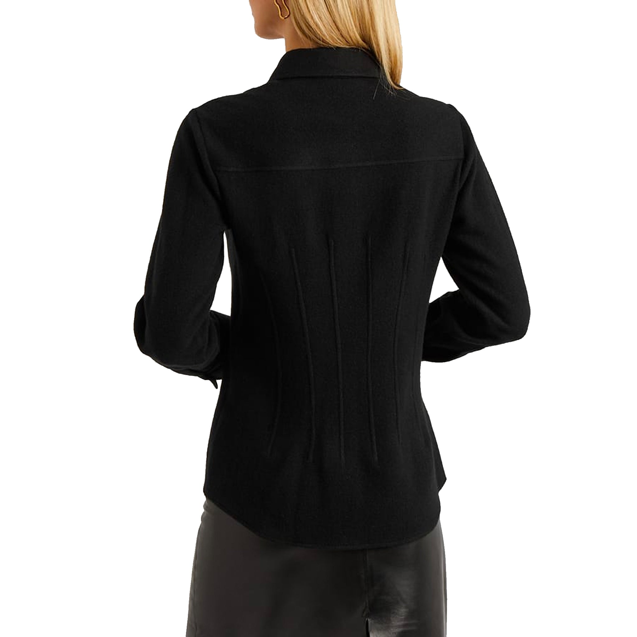- Composition: 50% wool 50% Cashmere - corsetry-inspired darts - long sleeves - slim fit for a feminine silhouette - Made in Madagascar -