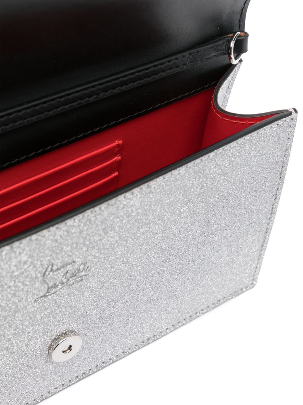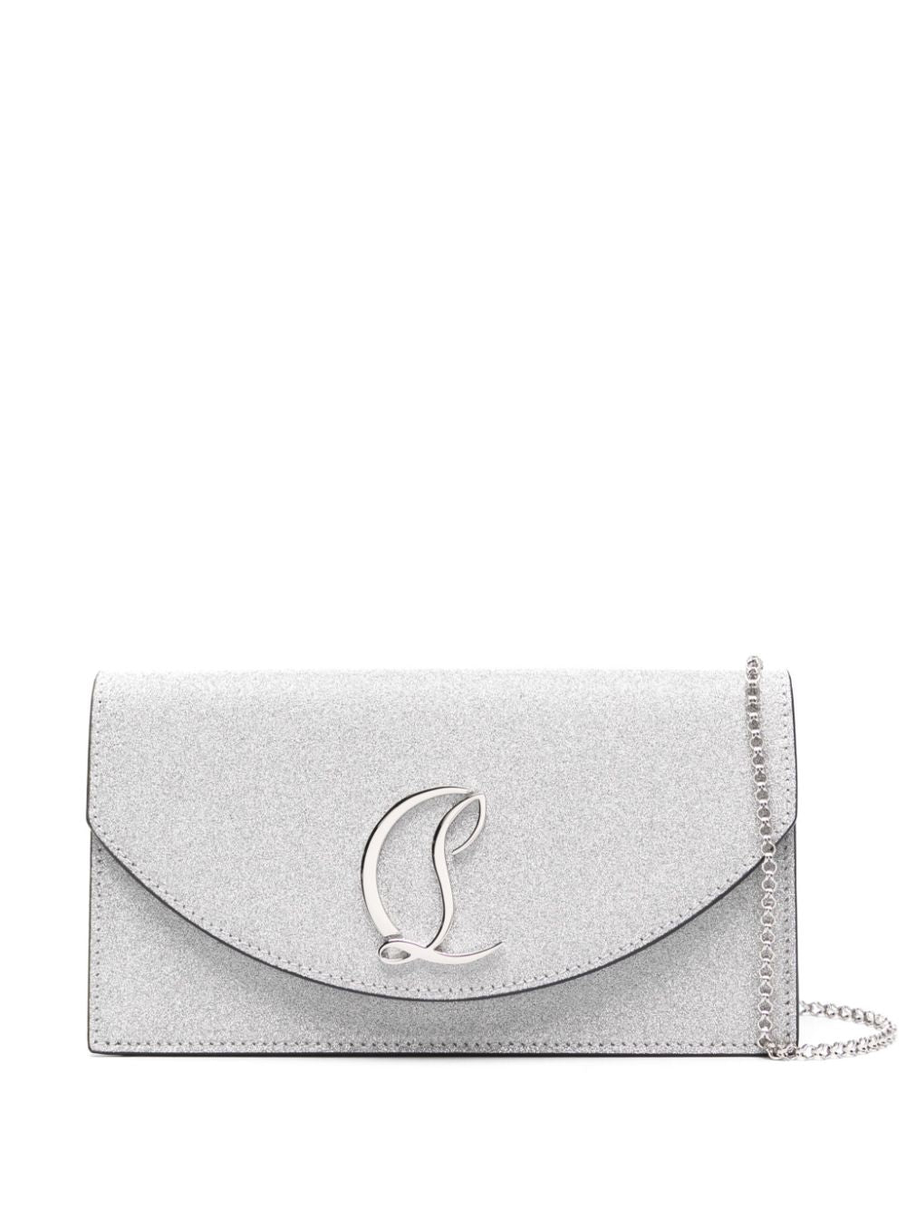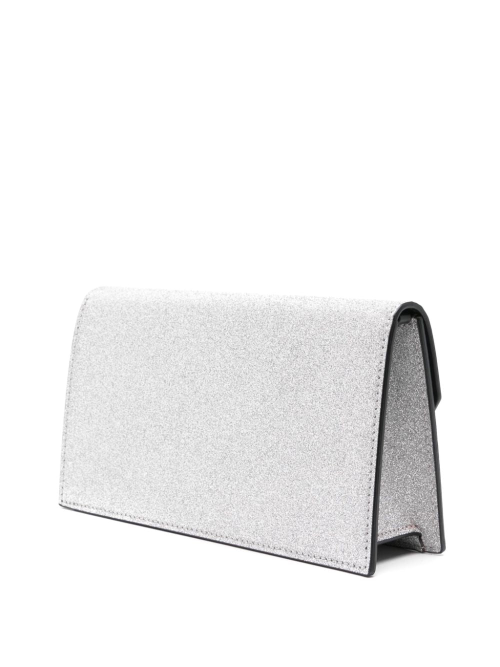 silver-tone calf leather glitter detailing logo plaque chain-link shoulder strap foldover top with magnetic fastening main compartment internal card slots