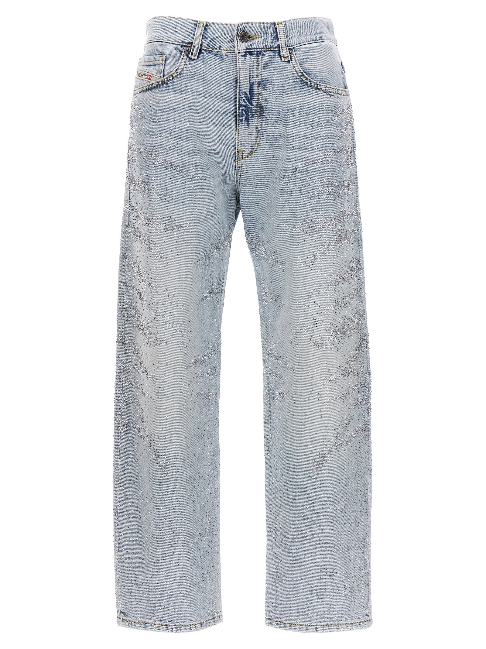 '2016 D-air' denim jeans with all-over crystal appliqué, medium waist and straight leg.
