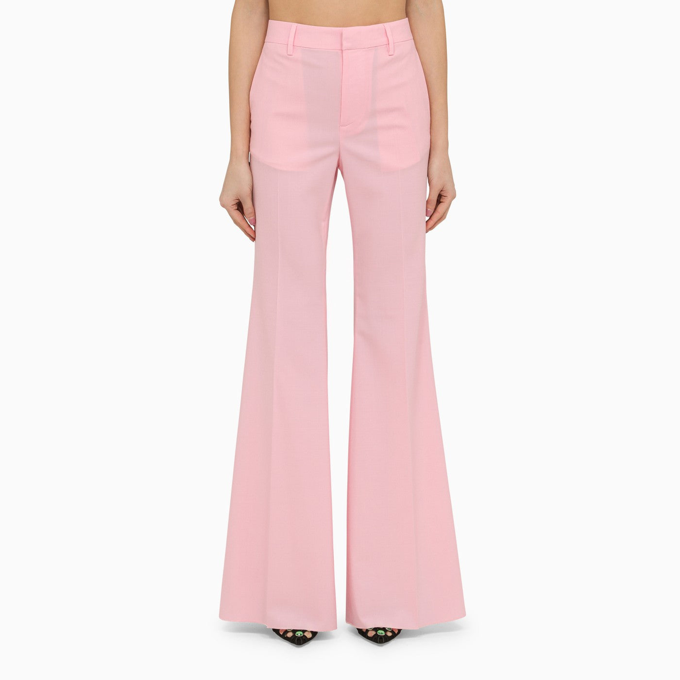 Pink wool blend palazzo trousers from Dsquared2 featuring a front zip and hook fastening, two side welt pockets, two back welt pockets, belt loops and a regular fit.