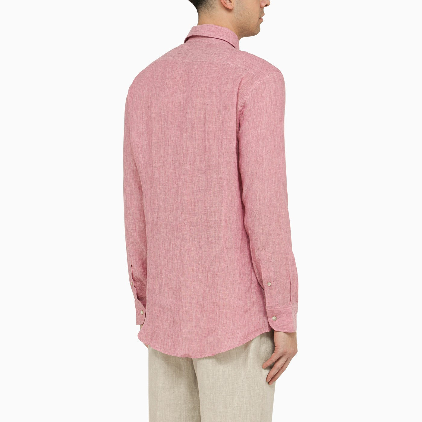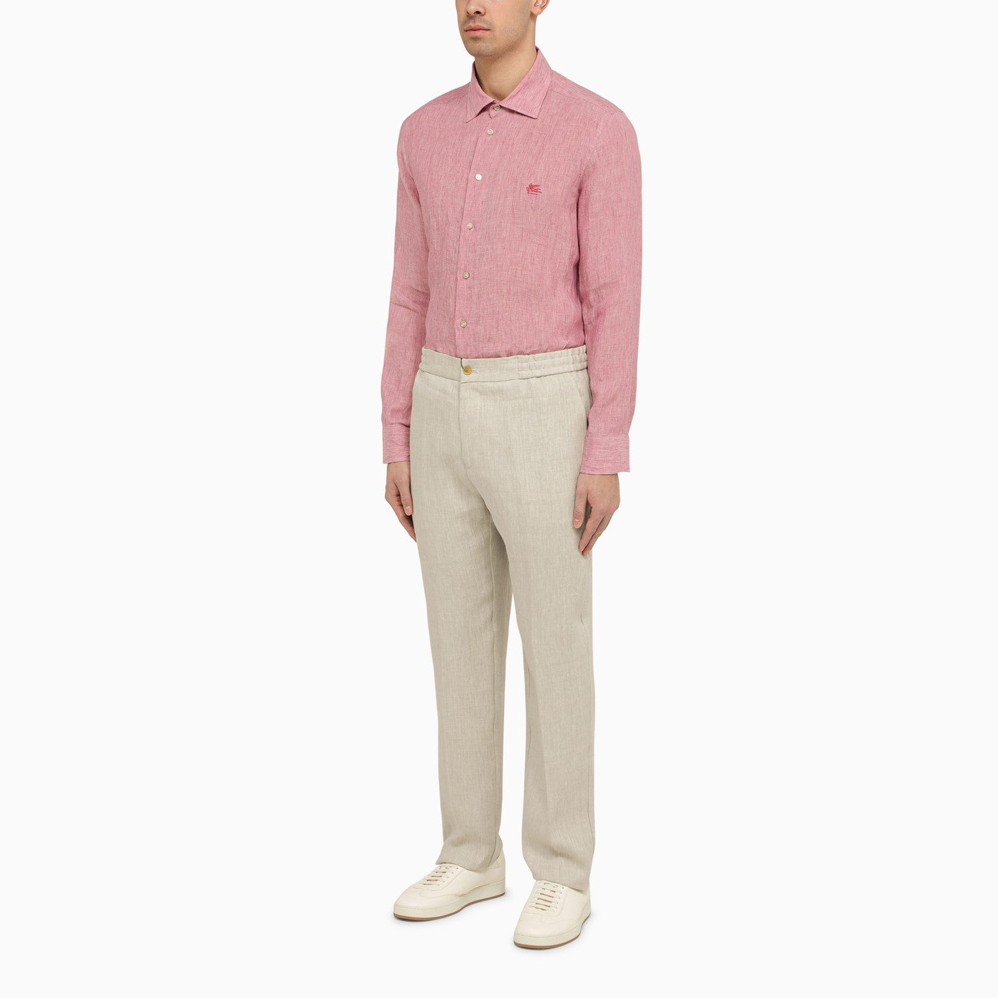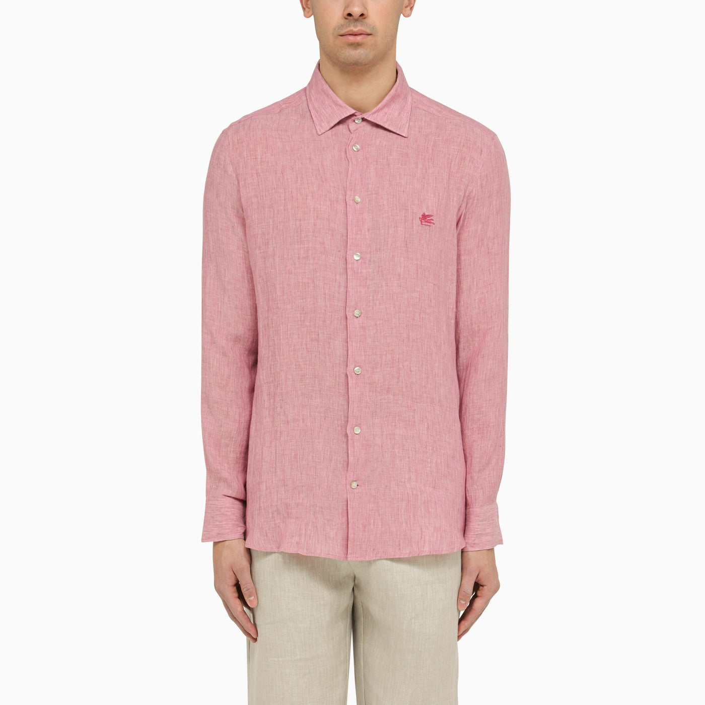 Long-sleeved shirt from Etro in red linen featuring logo embroidery on the chest, a classic collar, a front button placket, button cuffs and a curved hem.