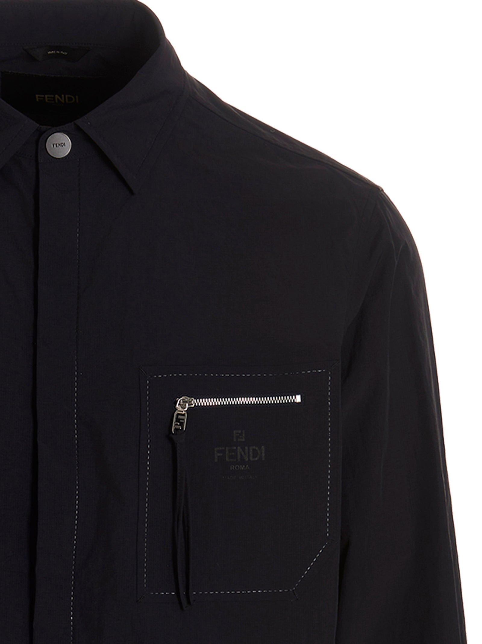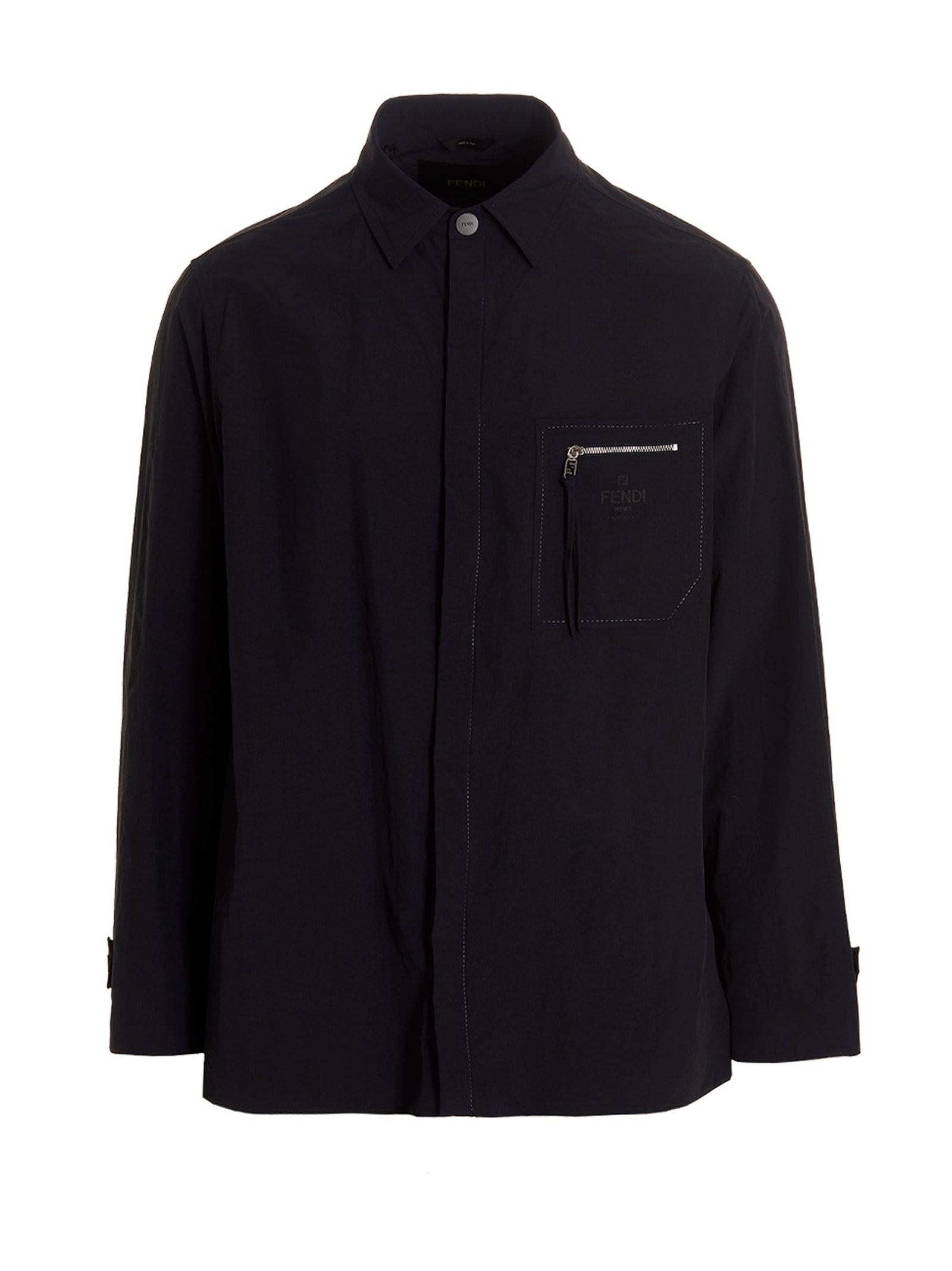 Nylon overshirt, featuring a button closure, a chest pocket with a logo zip and a shirt collar.