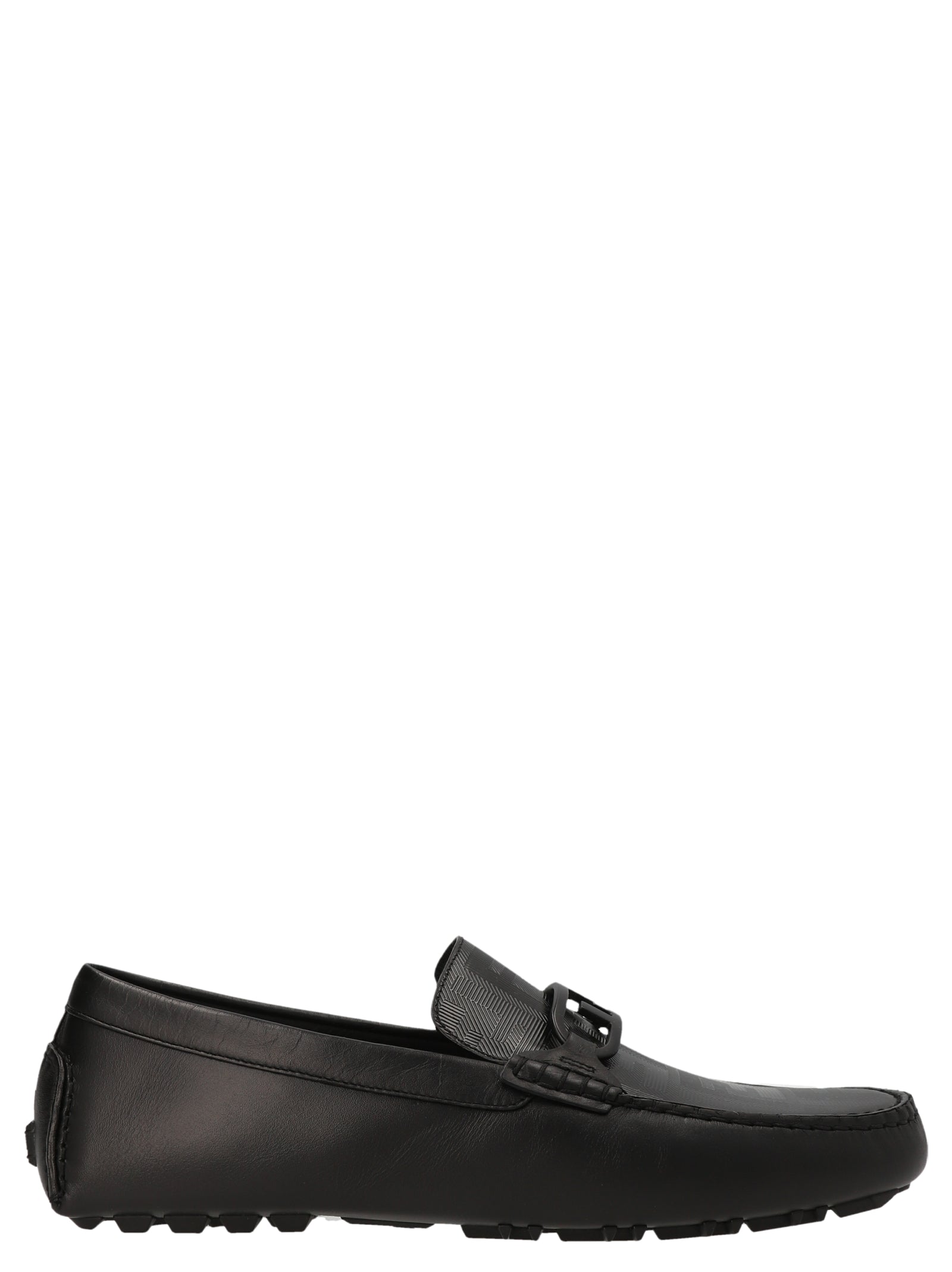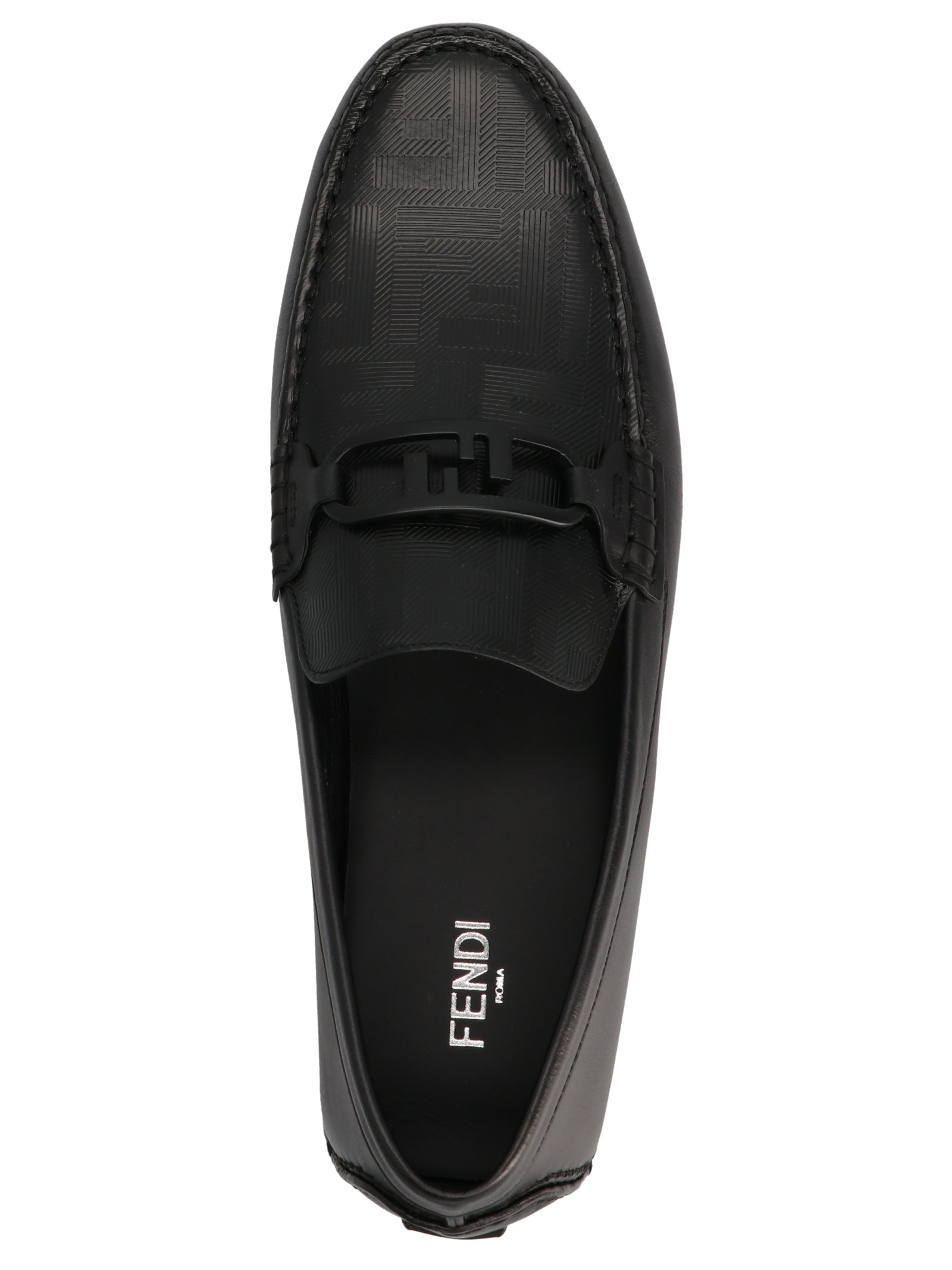 'O'Lock' leather loafers with upper detail with FF textured logo and metal logo buckle.