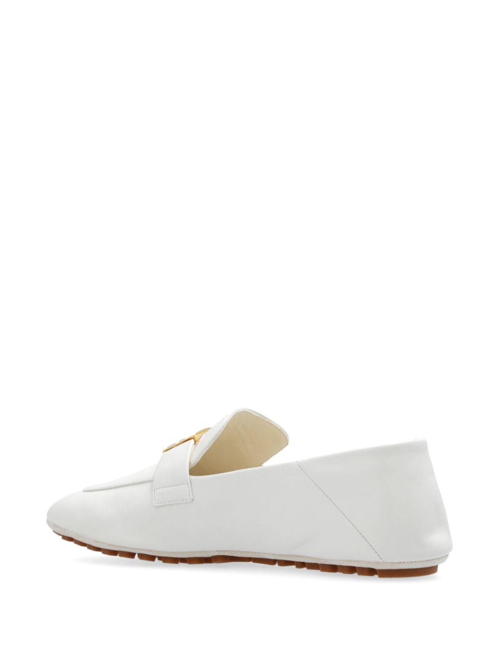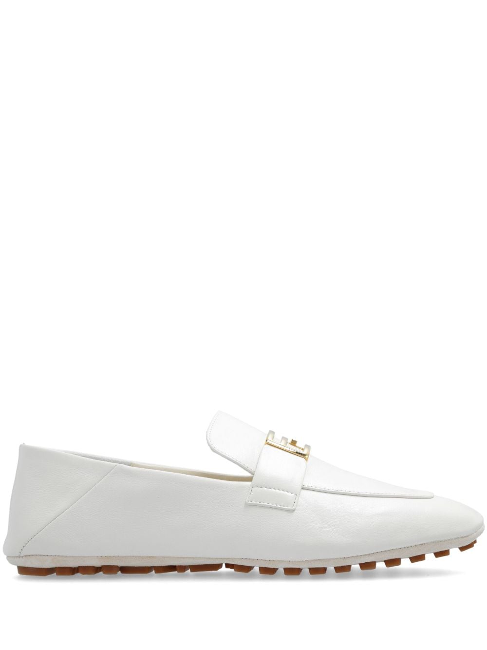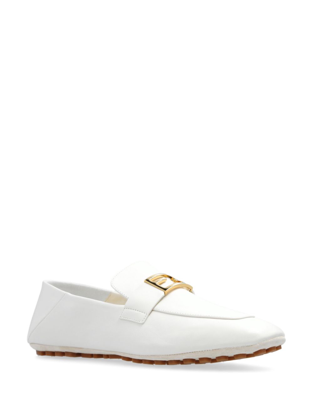 white lambskin leather gold-tone FF logo plaque square toe slip-on style branded leather insole folding heel ridged rubber sole