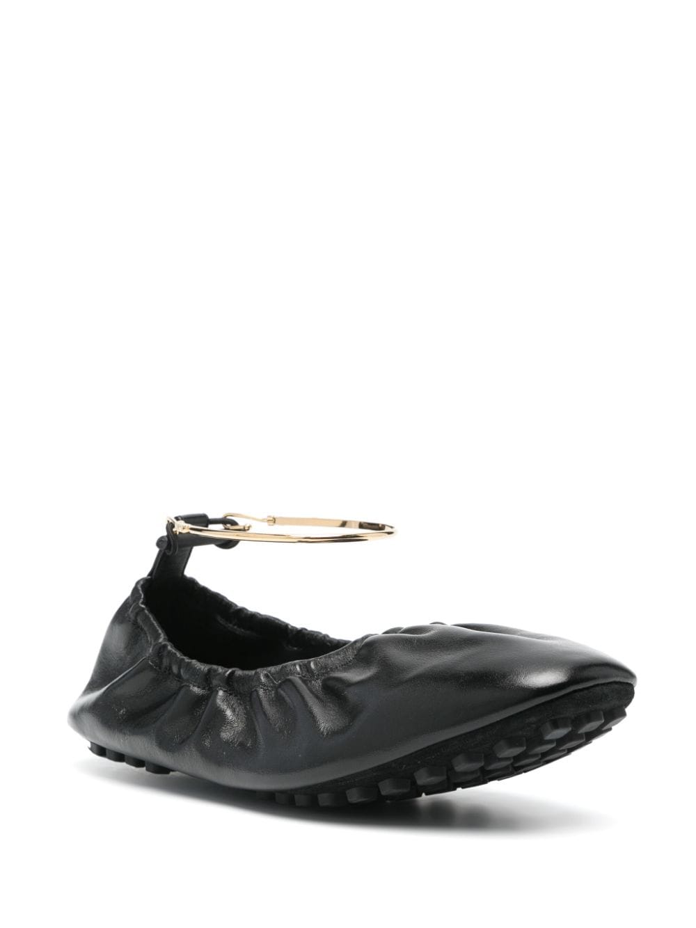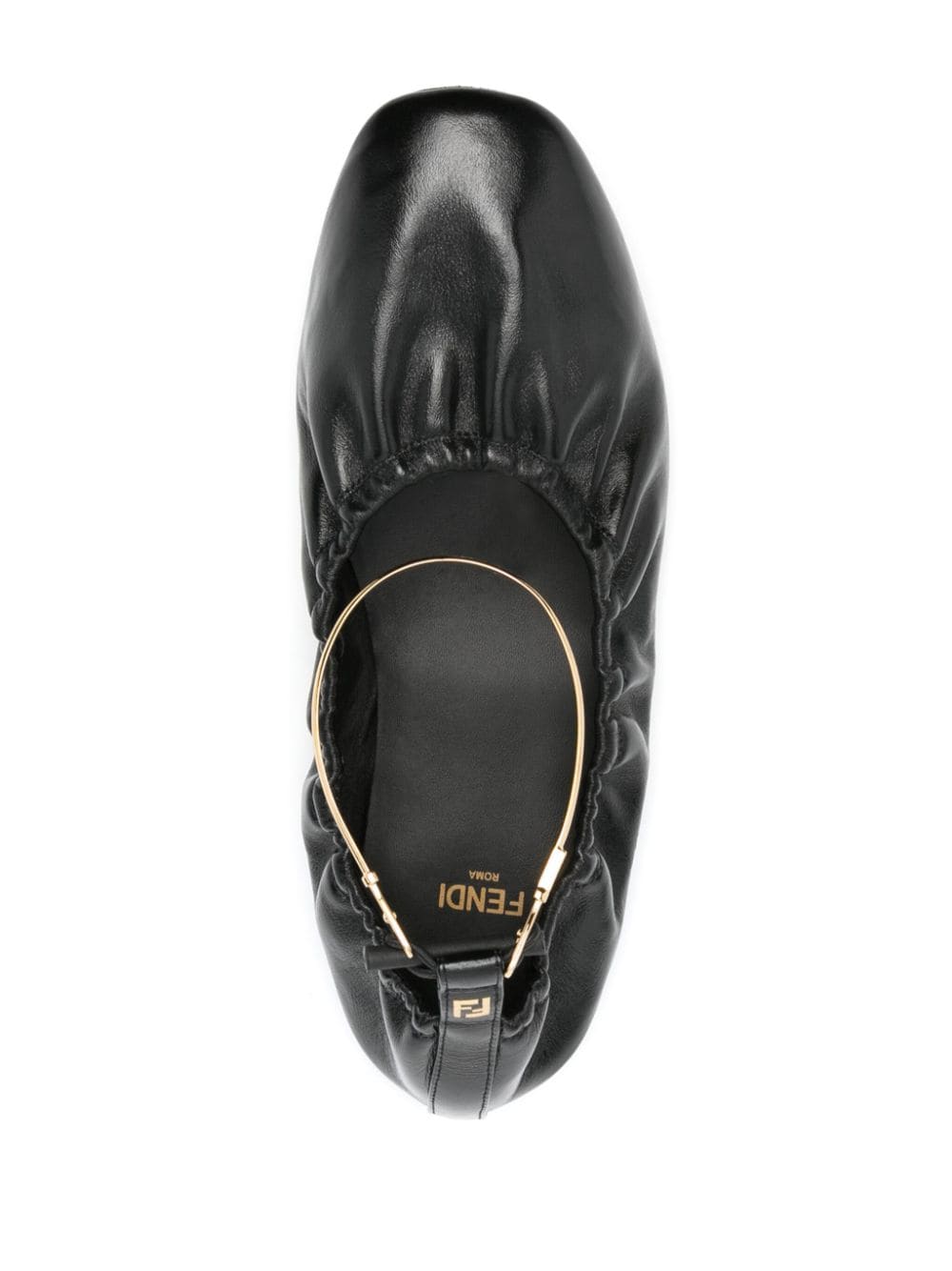 black calf leather smooth grain ruched detailing elasticated trim FF motif anklet detail almond toe branded leather insole speckled sole rubber outsole This piece comes complete with a protective dust bag.