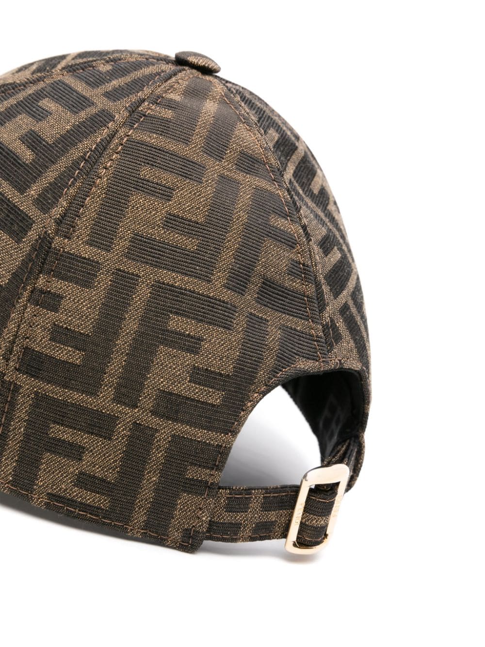 coffee brown monogram jacquard FF motif leather trim curved peak six-panel construction fabric-covered button at the crown adjustable strap to the rear logo-engraved buckle cotton lining