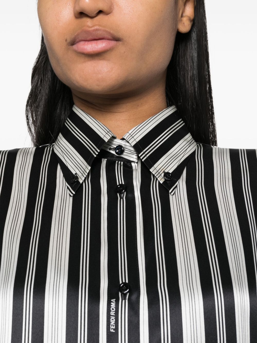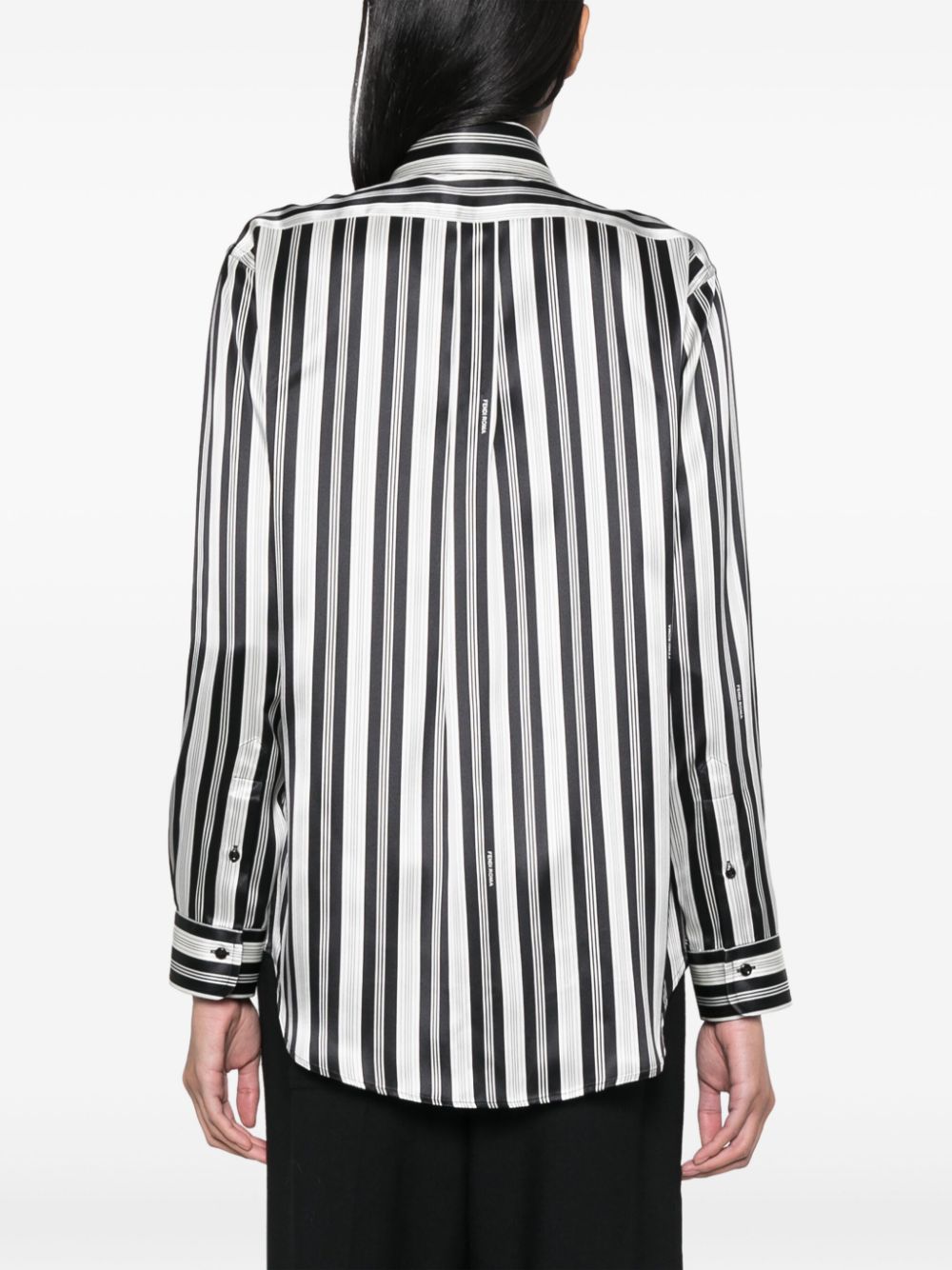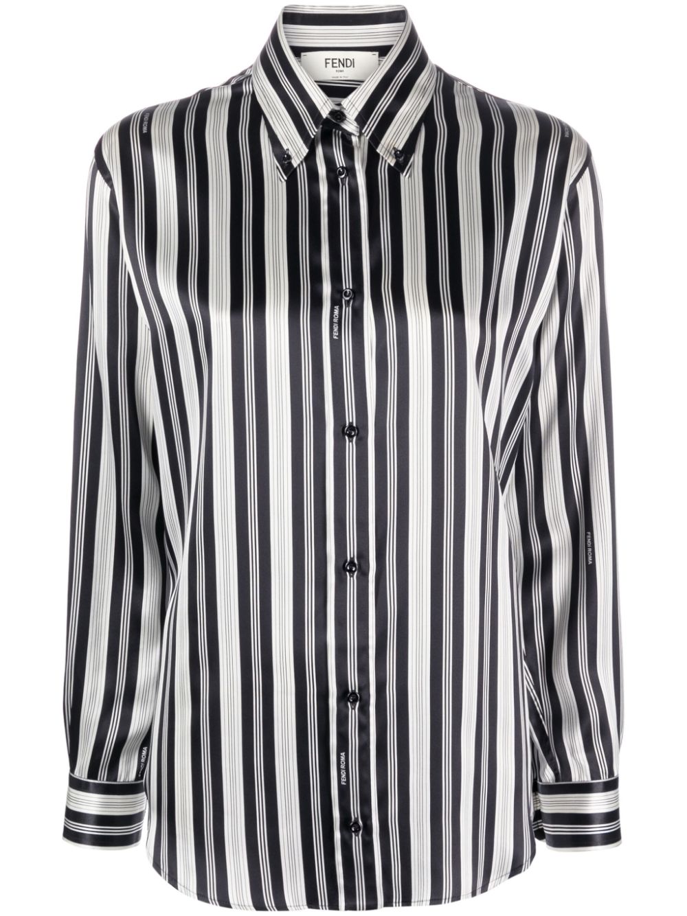 black/white silk vertical stripe pattern classic collar front button fastening long sleeves buttoned-cuff sleeves curved hem