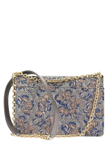The Furla 1927 mini bag is a crossbody made of elegant floral printed fabric, leather shoulder strap and metal chain pieces. Perfect to wear on the shoulder too, it stands out for its swivel closure with metal Furla logo that makes it practical and functional. - Small inside pocket - External pocket on the back DESIGNER ID: BAFKACO BX2555 A4700
