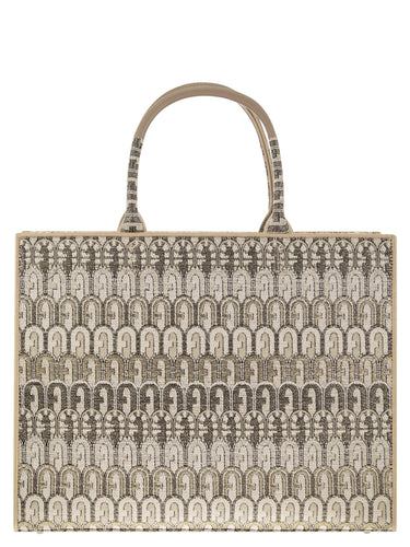 Made of recycled jacquard fabric with the iconic Arco logo, Furla Opportunity is a shooping bag perfect for any occasion. Generously sized, it is suitable for storing your essentials for workdays or weekend getaways. Finished in fine smooth leather, it is easily carried by hand with its matching handles. - Interior wall pocket with zip closure - Metal feet DESIGNER ID: WB00255 BX0383 TG400