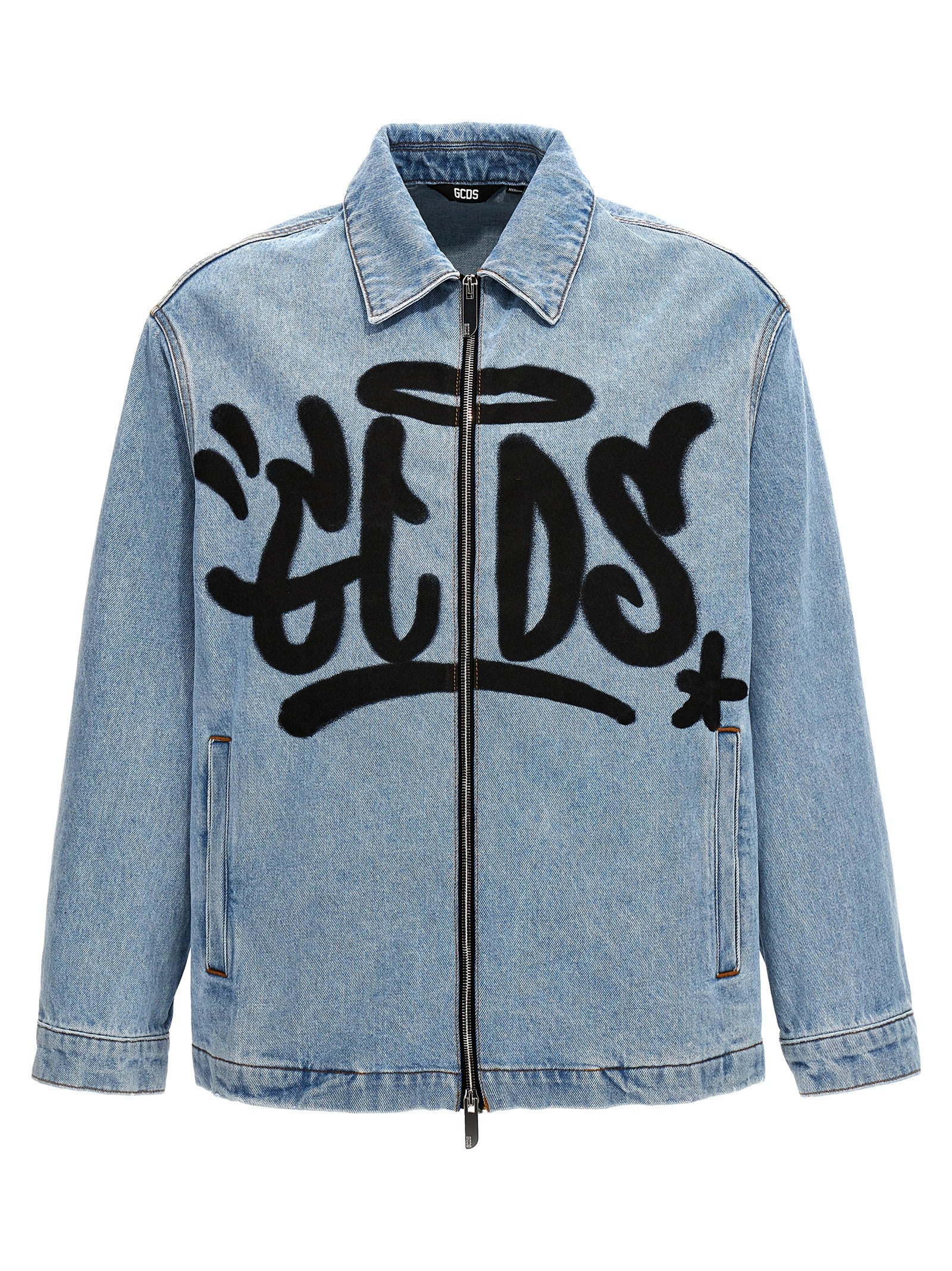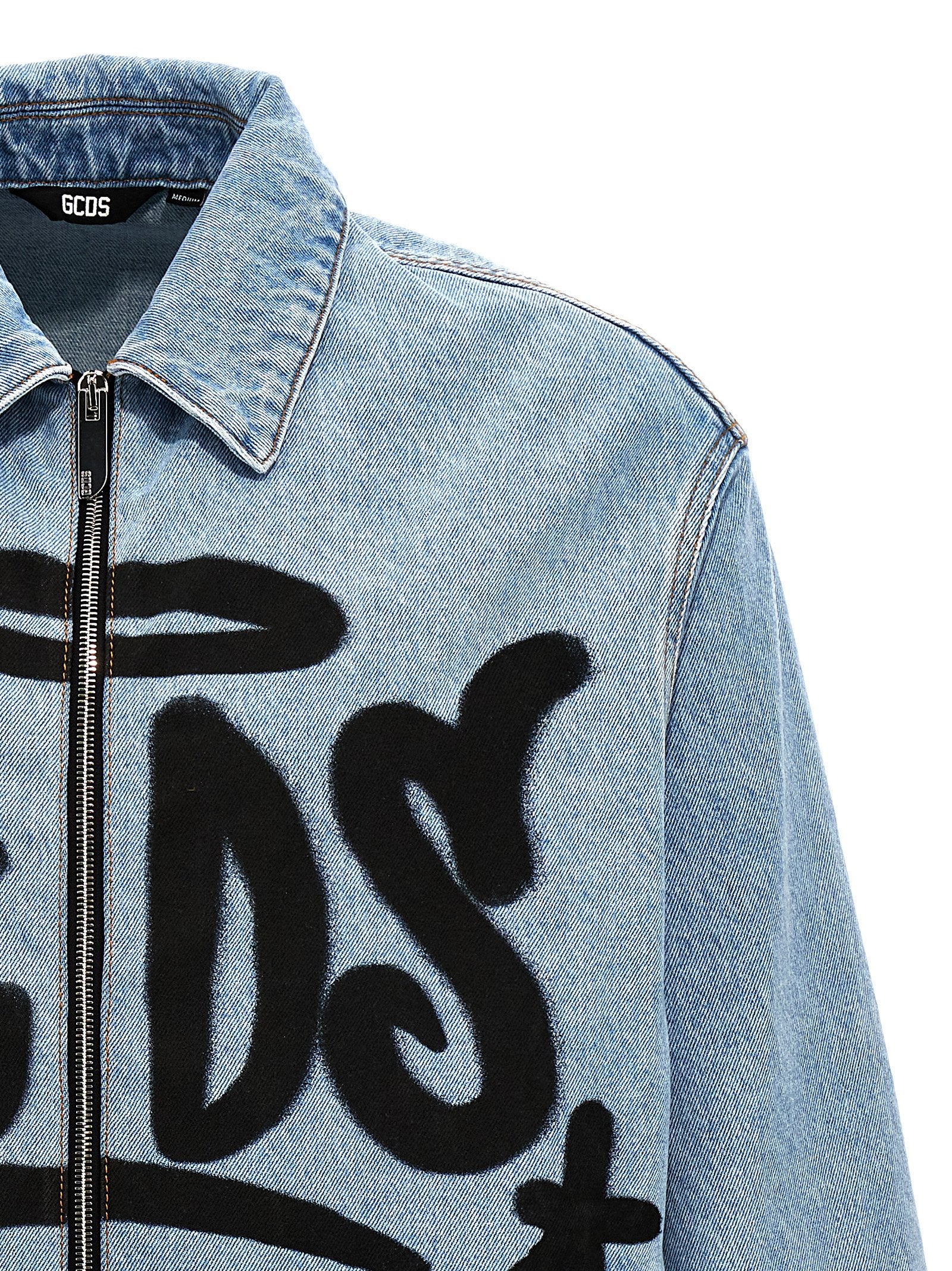 'Harrington' cotton denim jacket with graffiti logo print, zip closure, pockets, long cuffed sleeves.