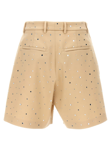 Shorts with all-over crystal embellishment, pin tucks, pockets.
