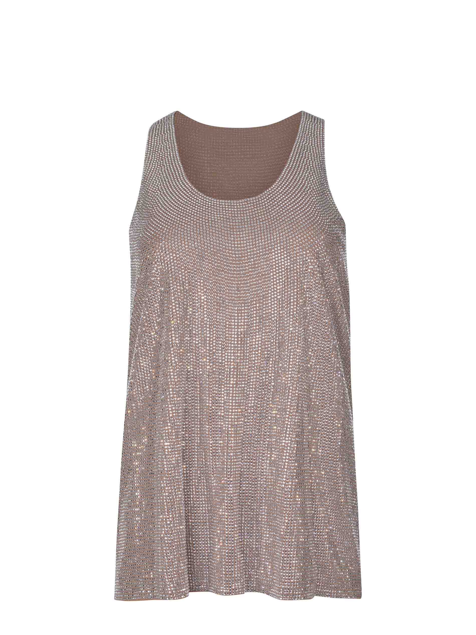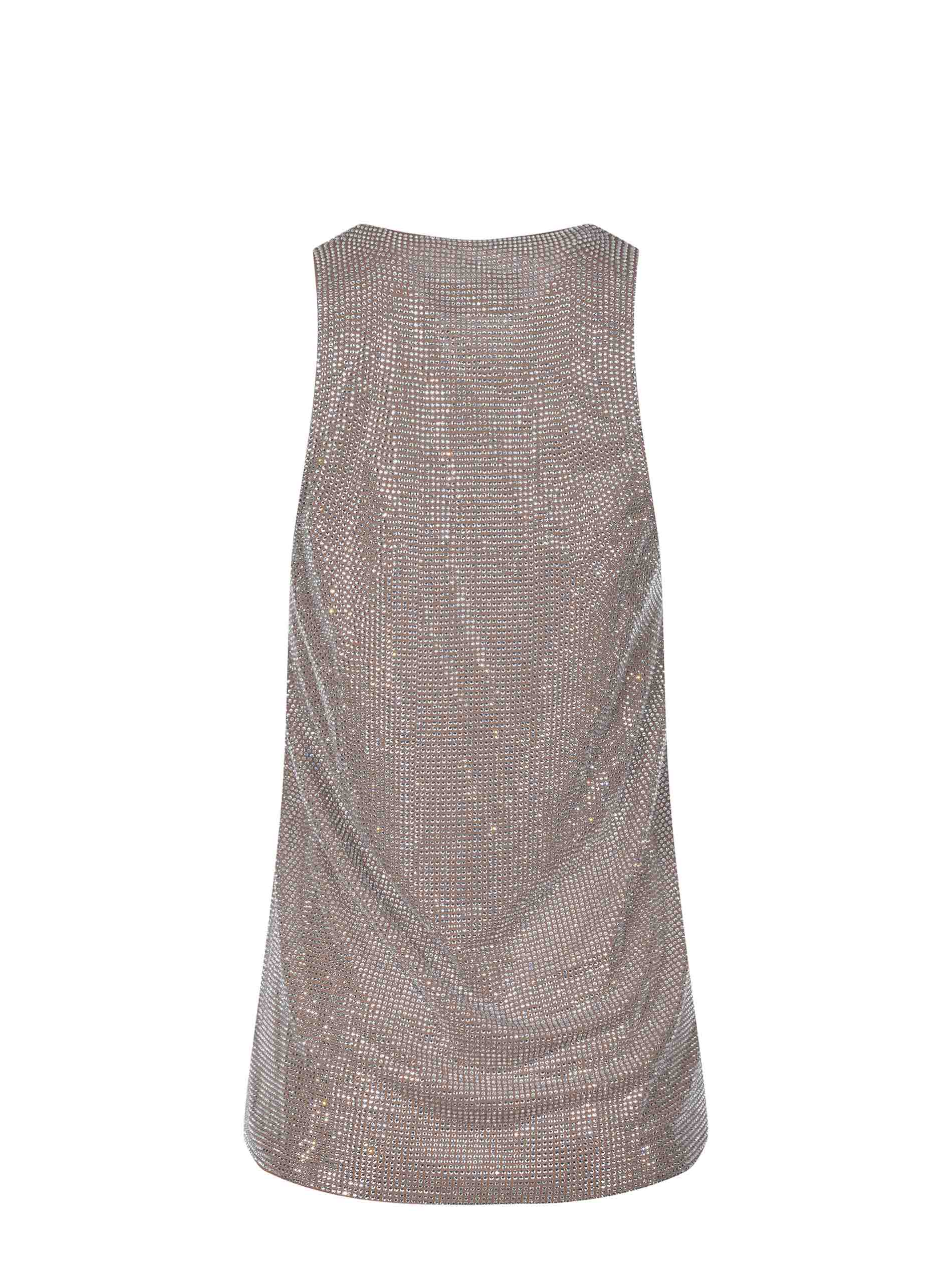Giuseppe Di Morabito tank top made of Beige viscose. Round neckline. Sleeveless. Entirely covered with silver rhinestones. Lined. 100% viscose Made in Italy