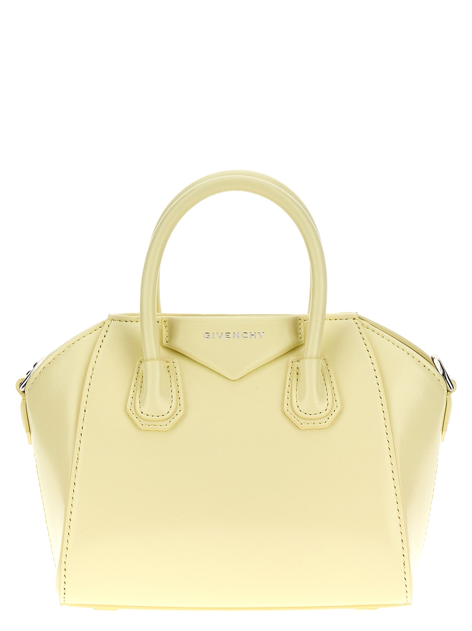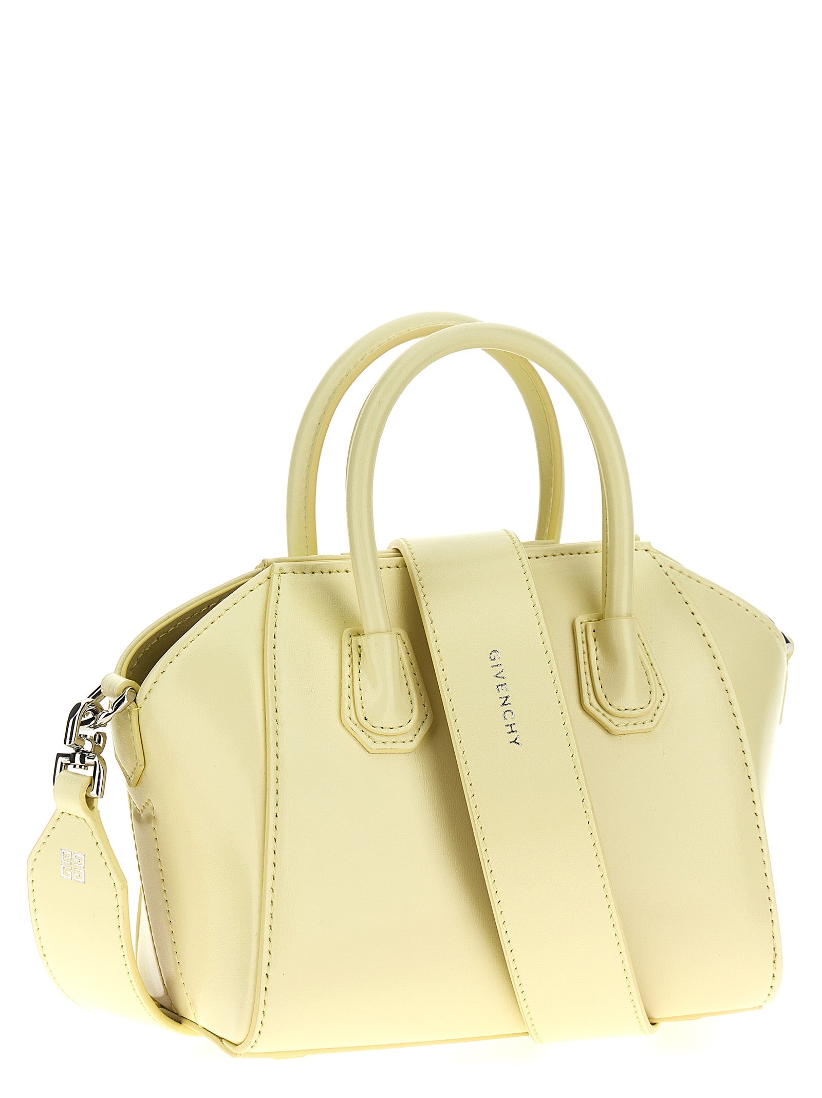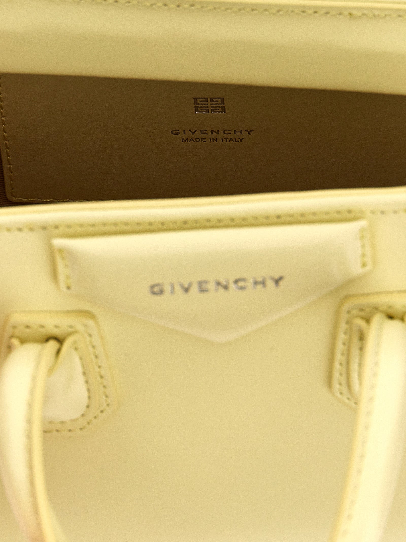 'Antigona Toy' leather box handbag with removable handle and shoulder strap, front embossed logo, zip closure.