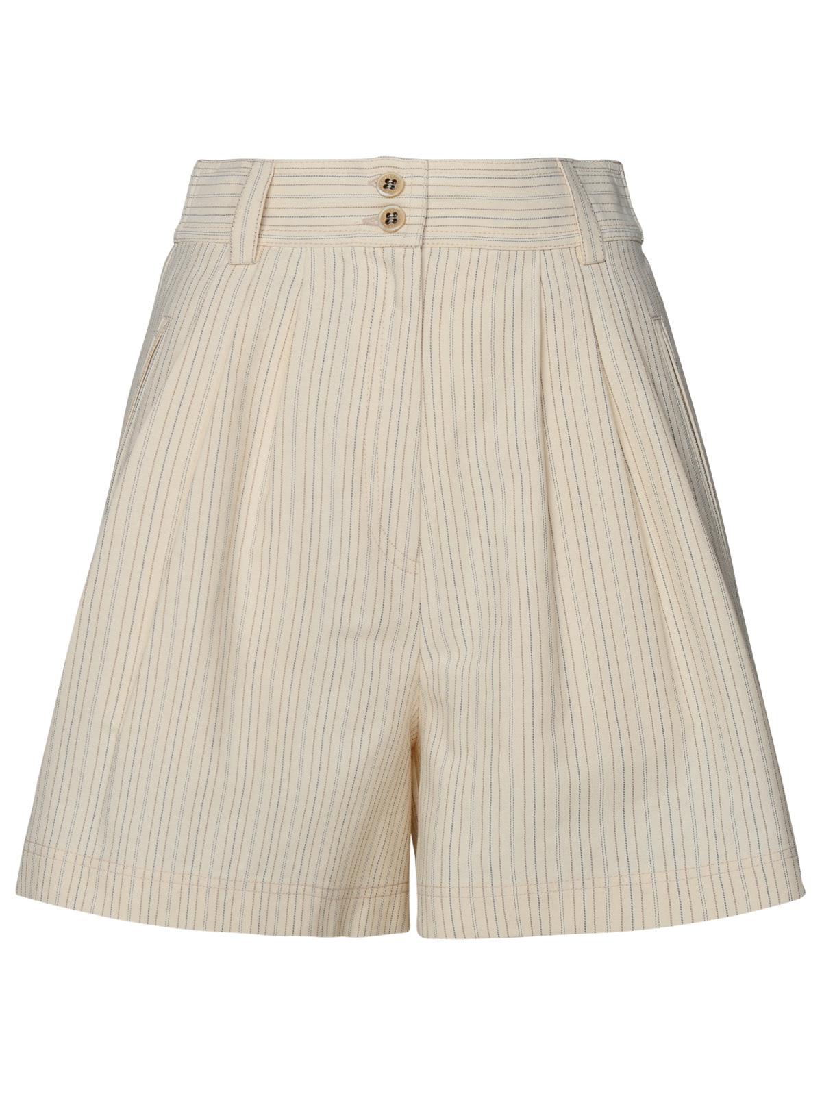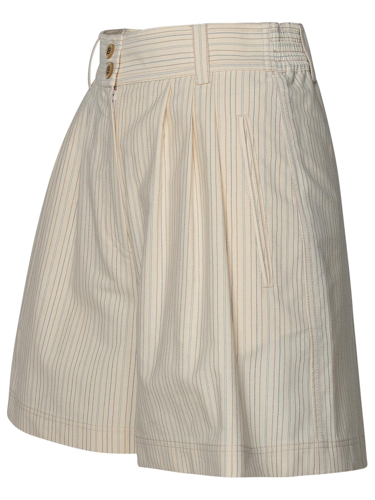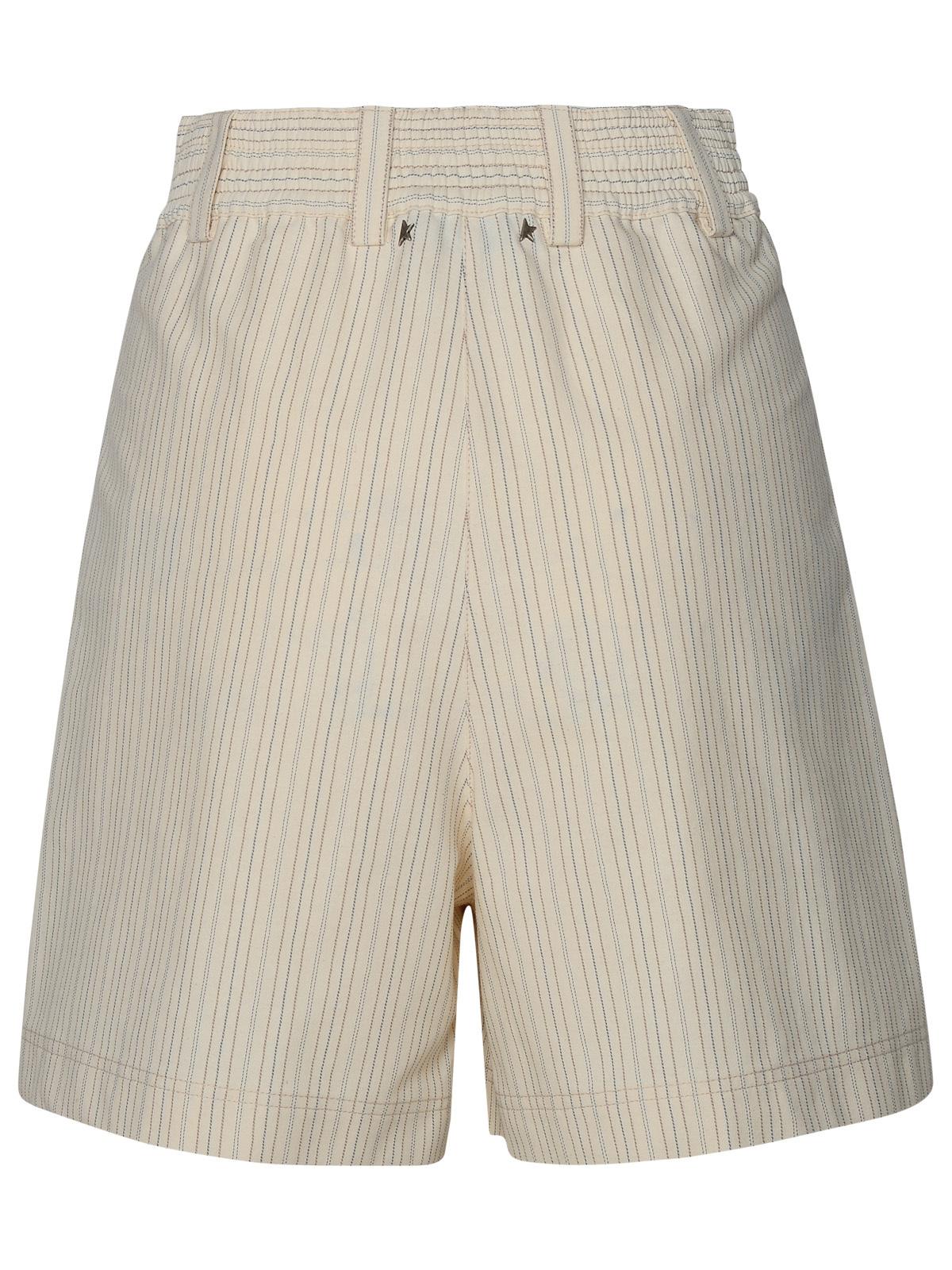Pleated striped shorts in cotton blend, front button and zip closure, side welt pockets, back button patch pockets, double star on the back