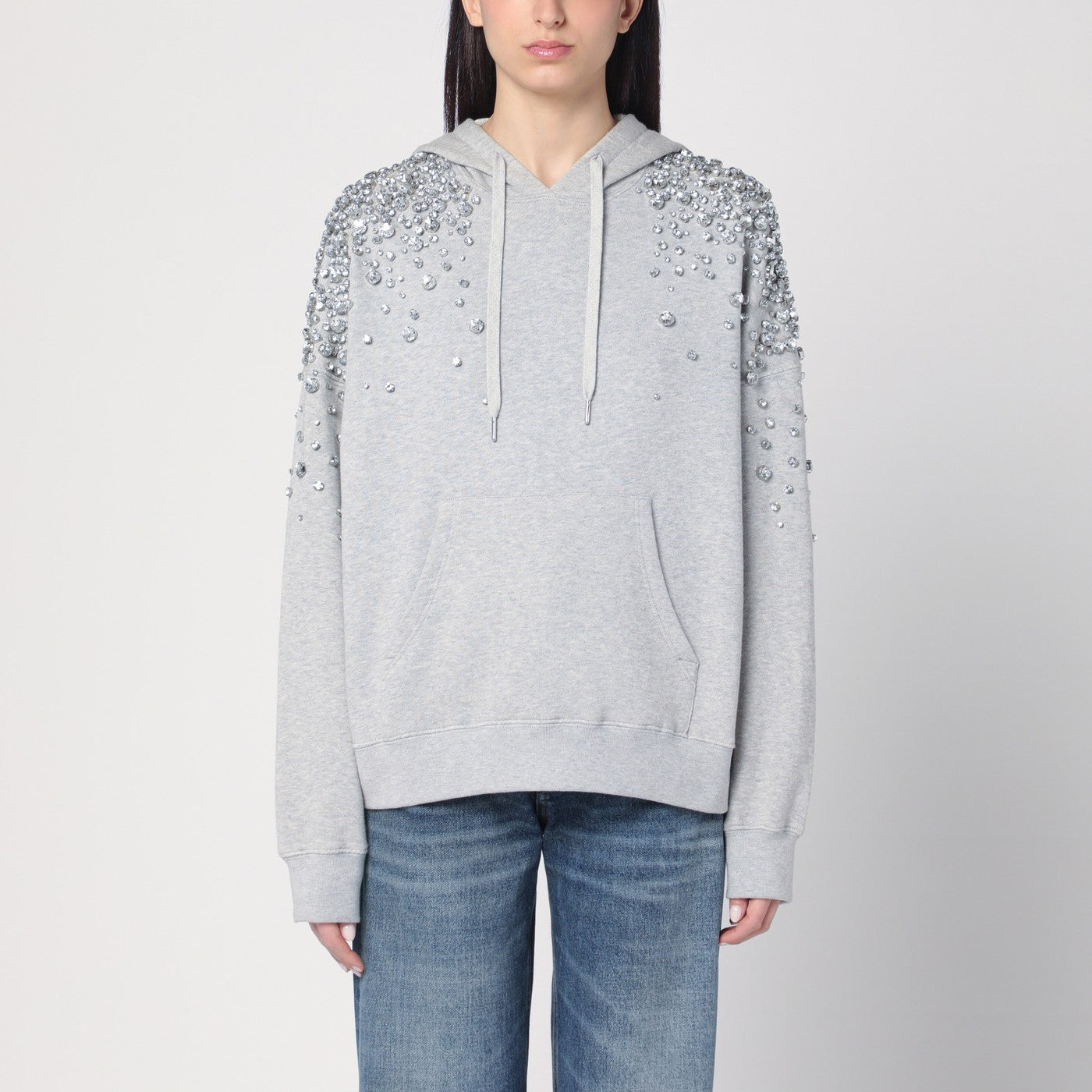 Gray cotton sweatshirt by Golden Goose Deluxe Brand, featuring a hood with drawstring, long sleeves, a front kangaroo pocket, ribbed edges, and applied crystals on the upper part.