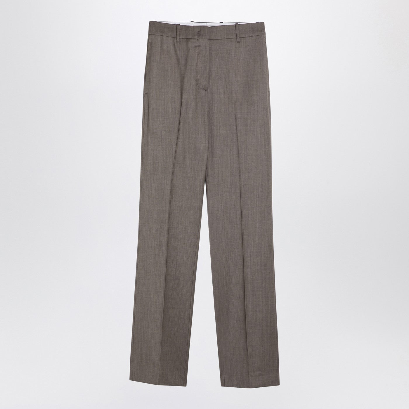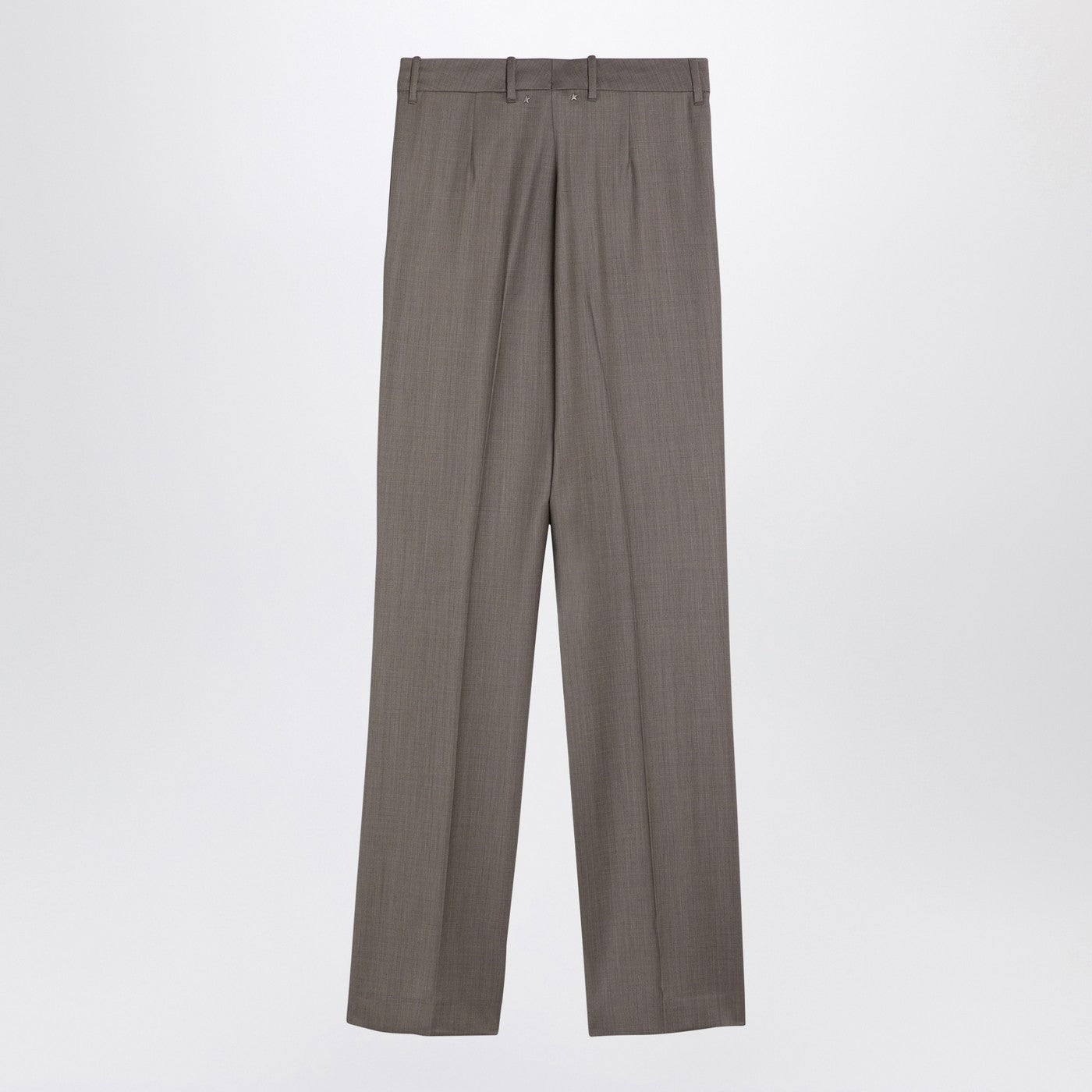 Light grey wool Golden Goose Deluxe Brand trousers featuring a front hook-and-eye zip fastening, front darts, waist loops, two side welt pockets and two logo stars on the back.