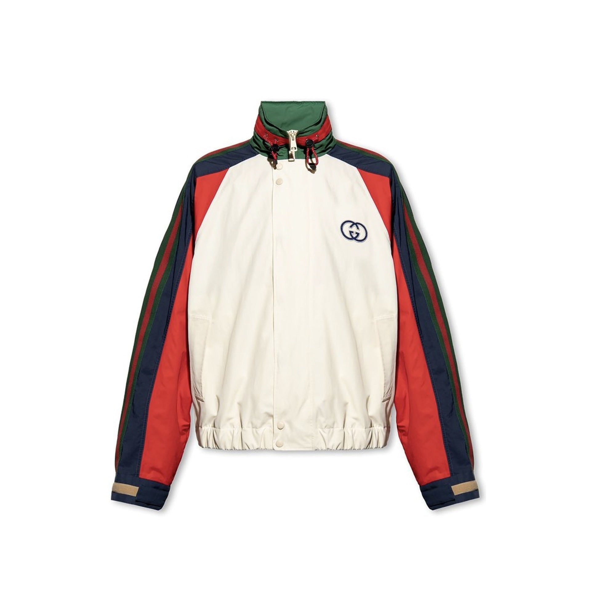 - Composition: 45% Cotton 55% Polyester - Long sleeves - Elasticated waist - Two side pockets - Zip fastening - Front logo patch - Web ribbon details - High collar with drawstring - Made in Italy -