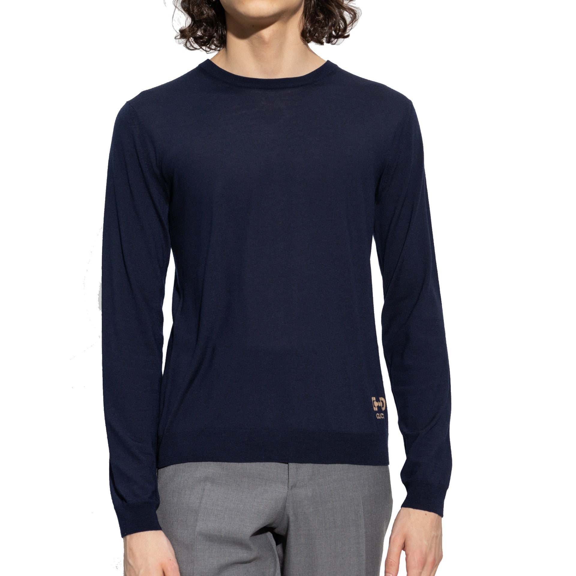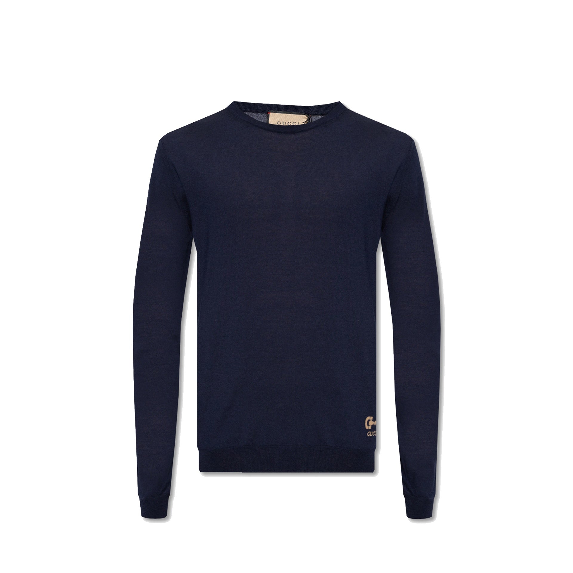 - Composition: 100% Wool - Long sleeves - Round neck - Ribbed trims - Embroidered logo detail - Model is 193 cm tall wears size L - Made in Italy -