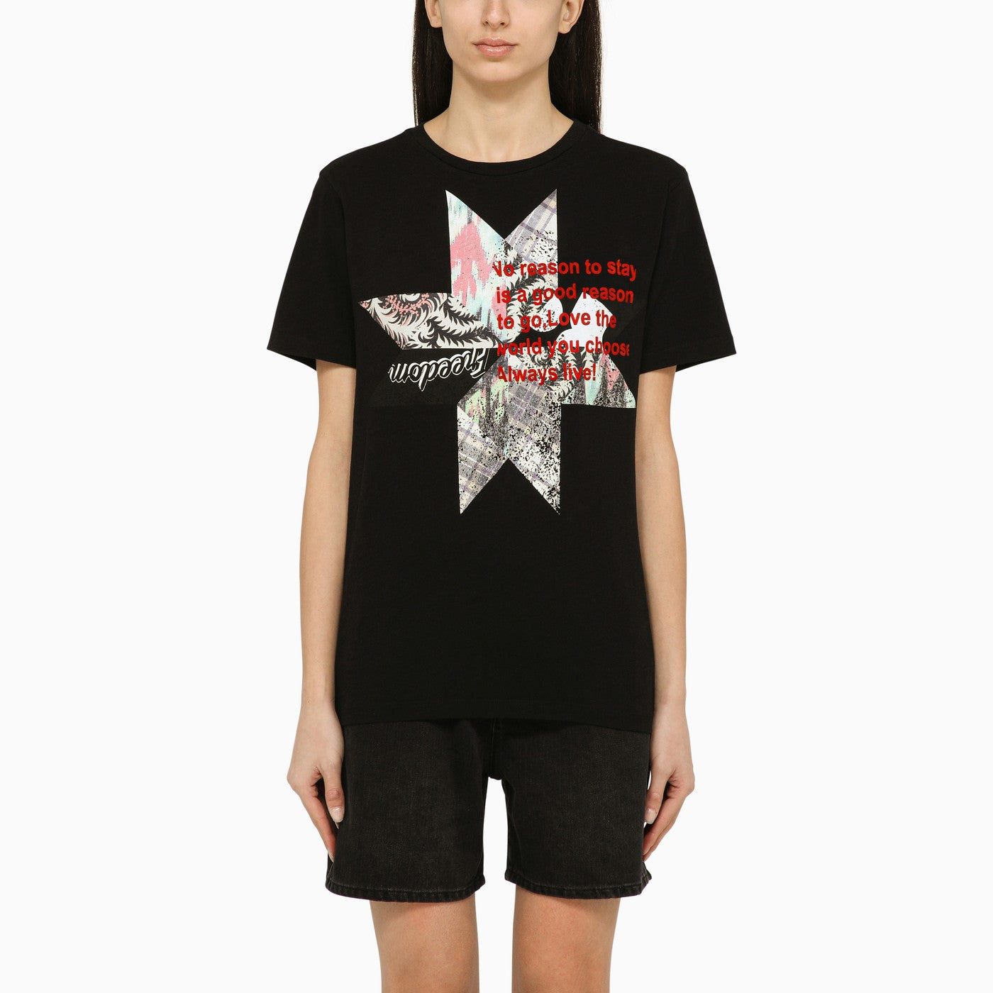 Black cotton crew-neck T-shirt from Isabel Marant featuring short sleeves, front print and straight hem.